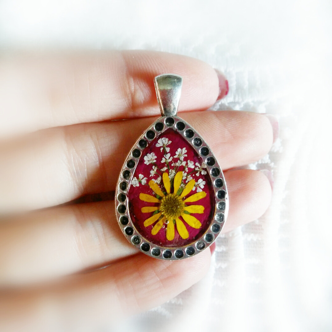 Sunflower necklace Daisy necklace Pressed flower necklace Resin pendant gift for women