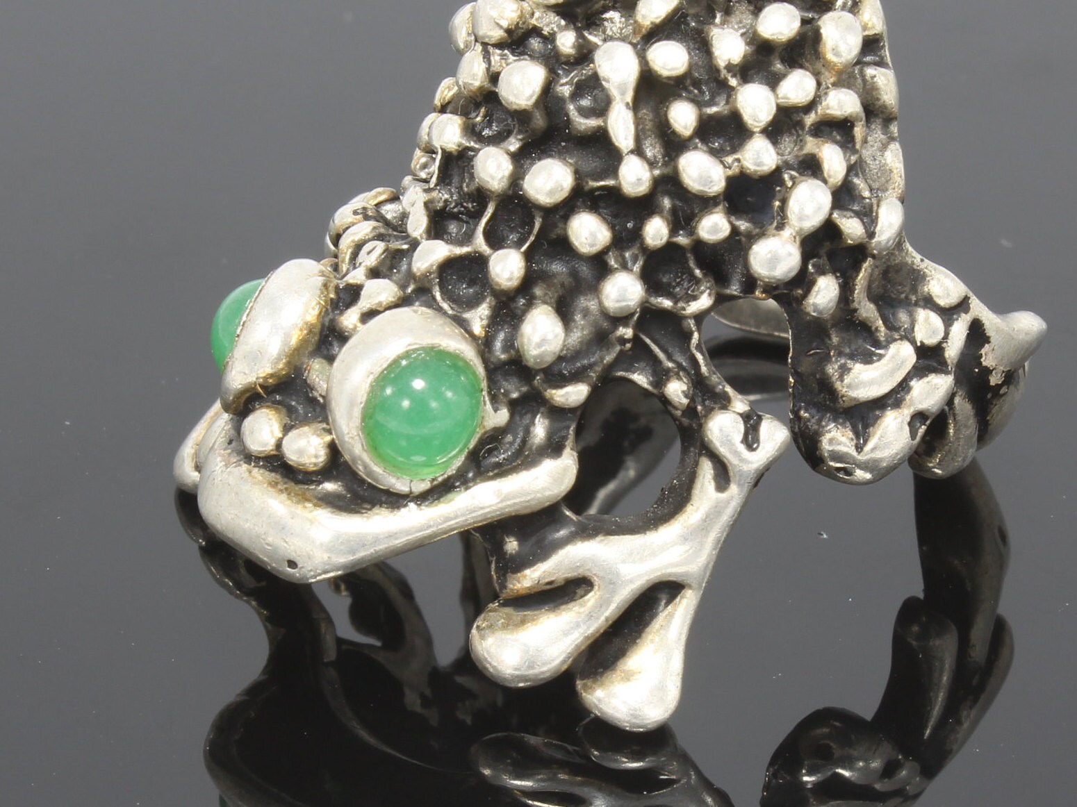 Art Deco Sterling Silver Frog Green Stone Unique Boho Ring, Boho Jewelry, Green Jade Large Silver Ring, Armenian