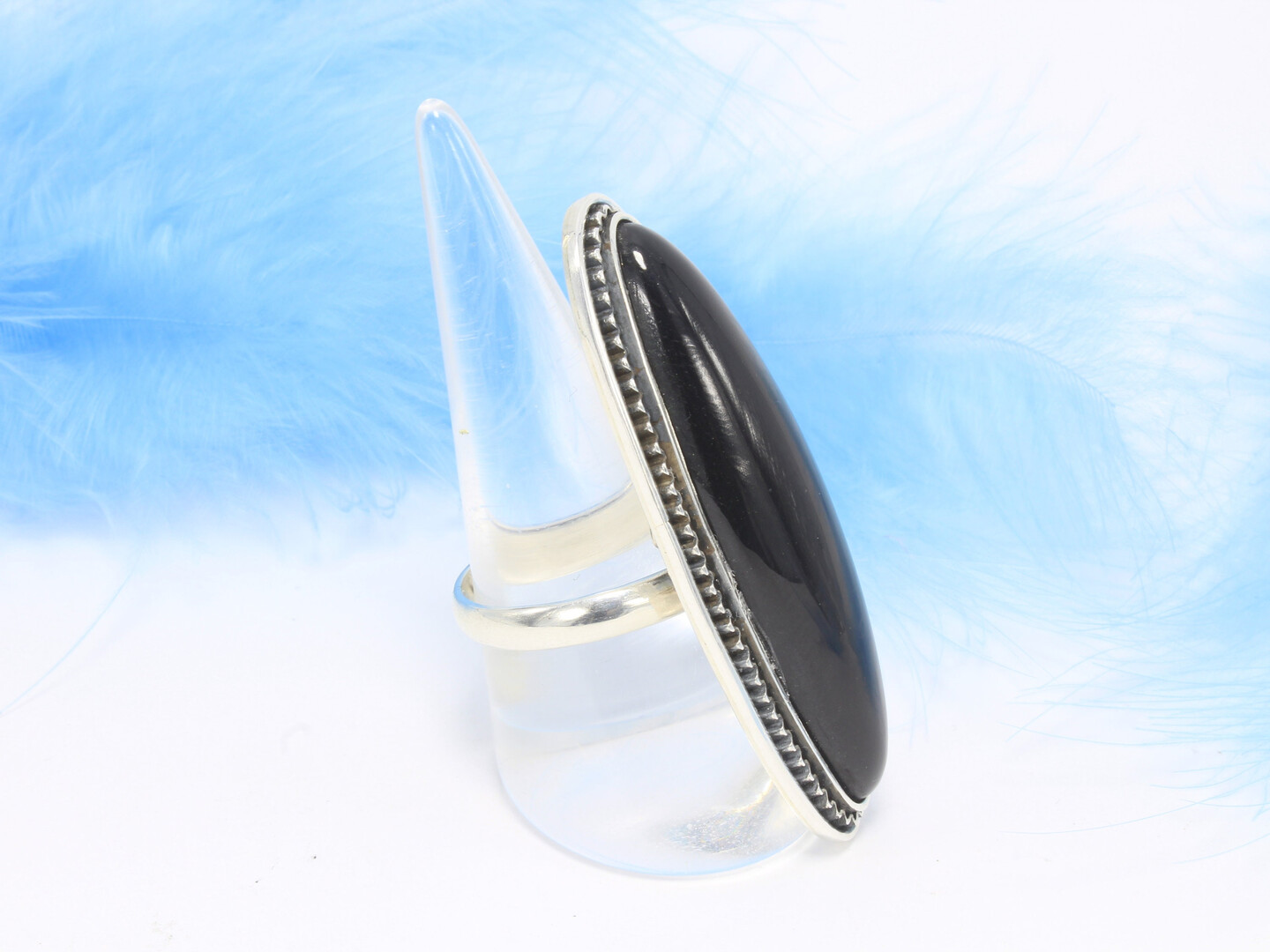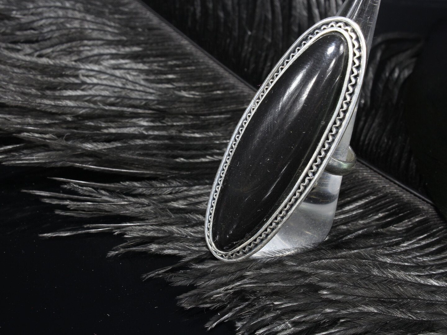 Black Obsidian Gemstone Sterling Silver Adjustable Cool Ring, Statement Boho Bohemian Ring, Gift For Her Armenian Jewelry