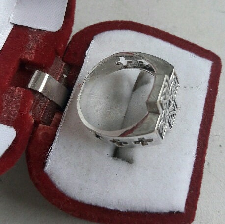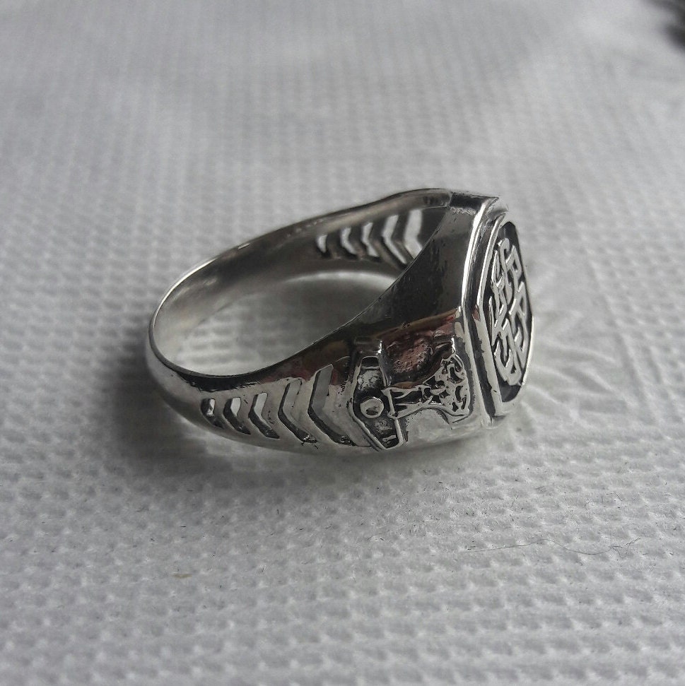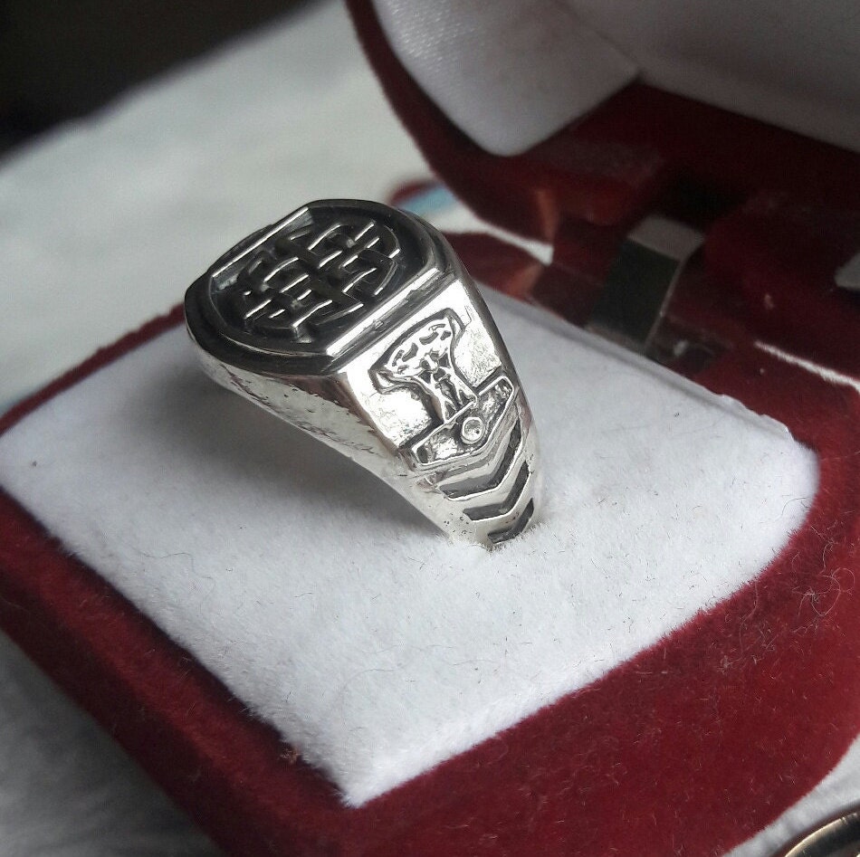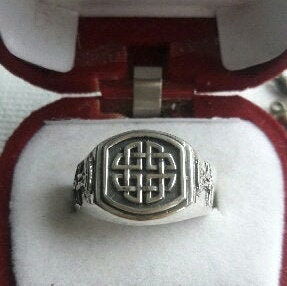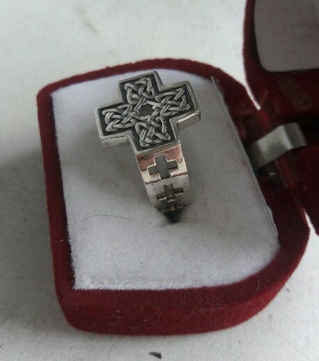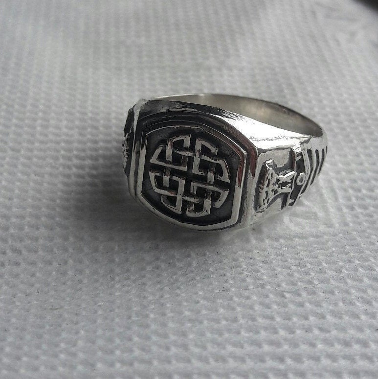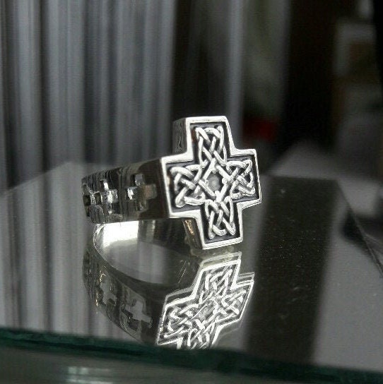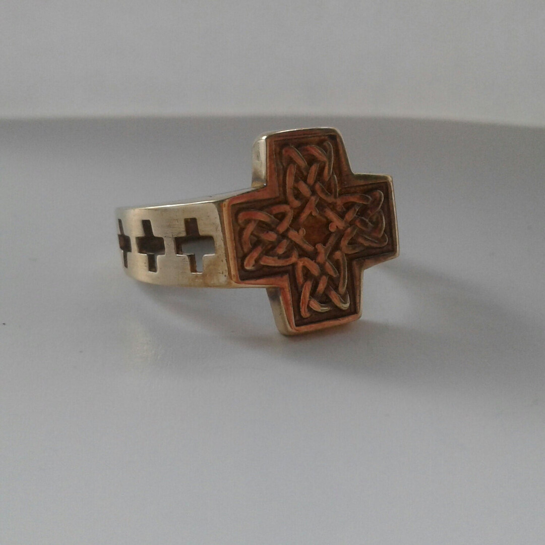 Men's Viking Ring with Celtic Silver Knot. Celtic cross on the ring. Scandinavian jewelry Handmade Brass ring