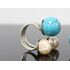 Pearl Turquoise Art Deco Silver Dainty Adjustable Open Ring, Sterling Silver Gift For Her Statement Gemstone Armenian Jewelry