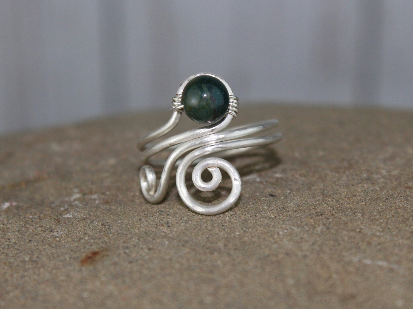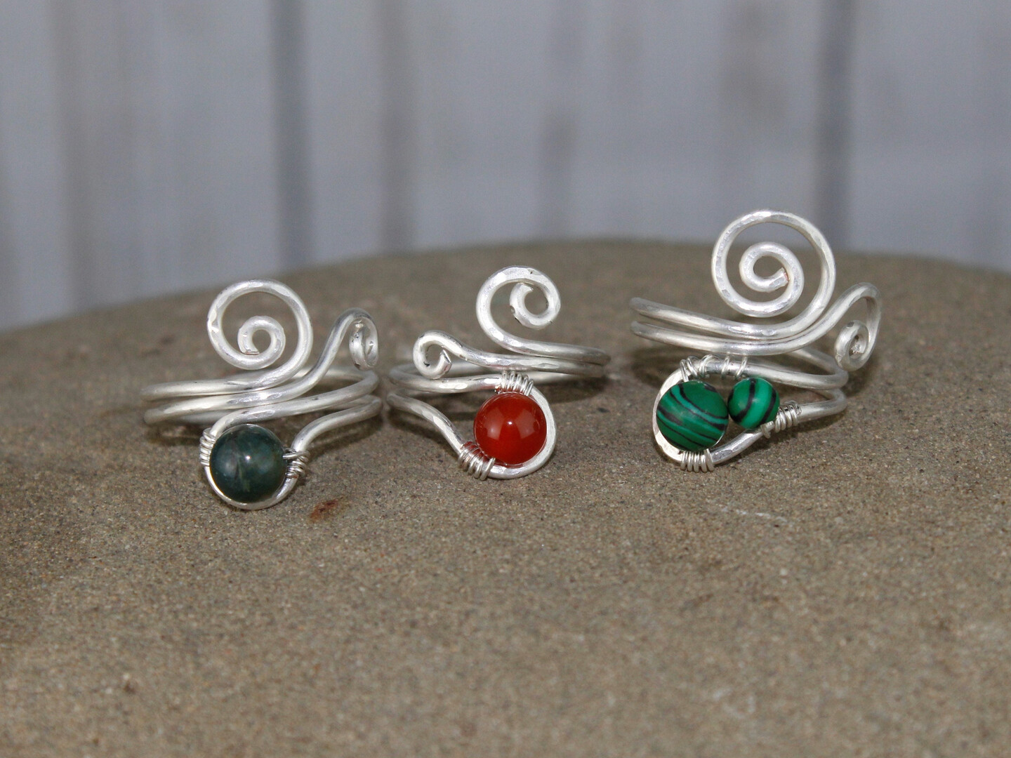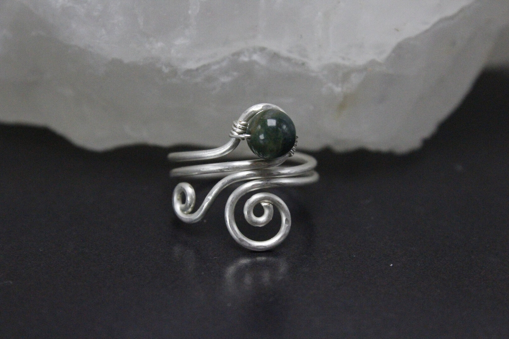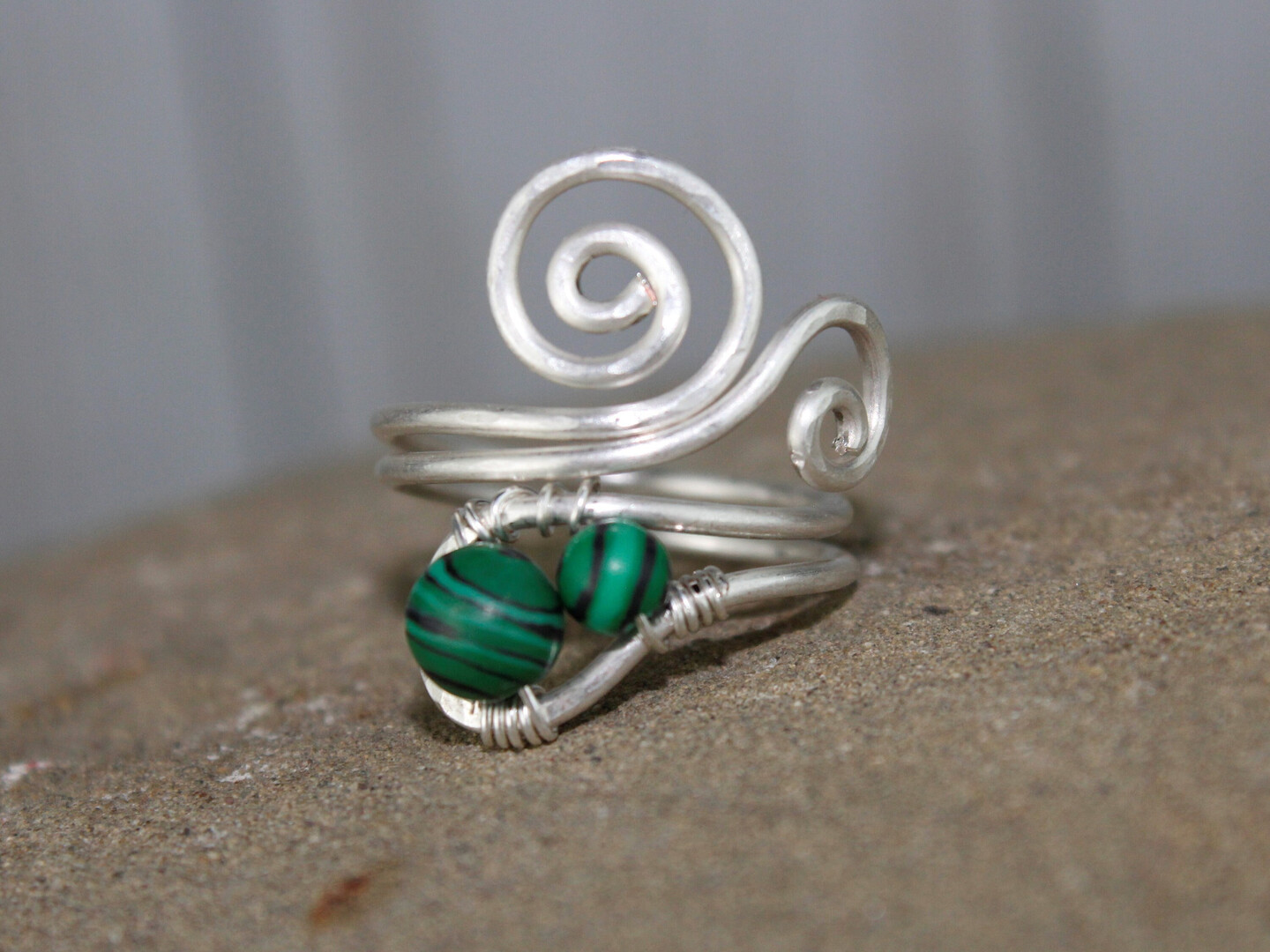 Silver Plated Copper Stone Wire Wrapped Adjustable Ring Jewelry, Green Jade Malachite Jasper Handmade Hammered Rings, Armenian Jewelry