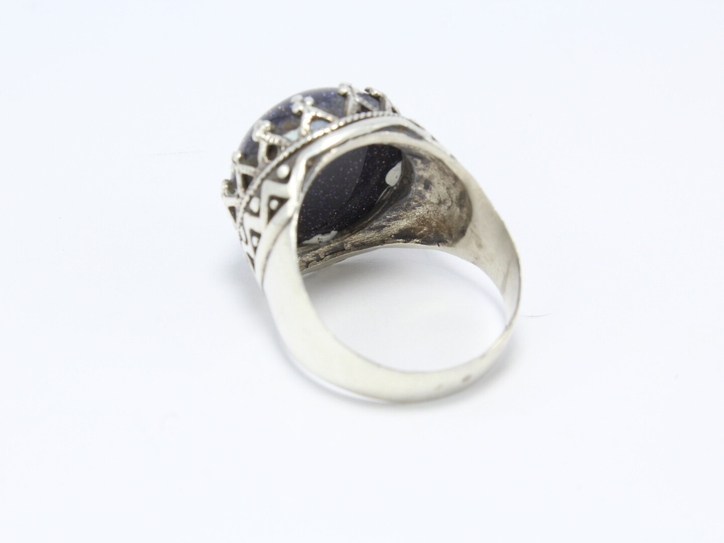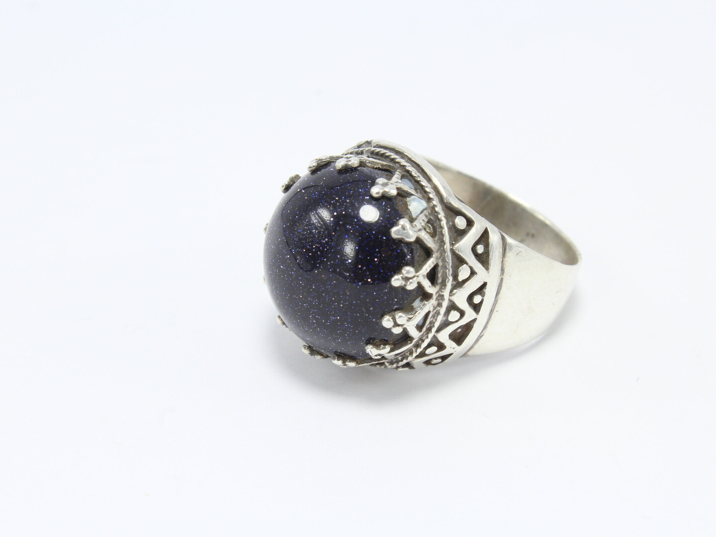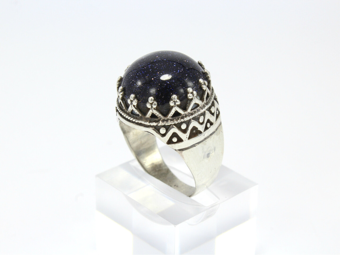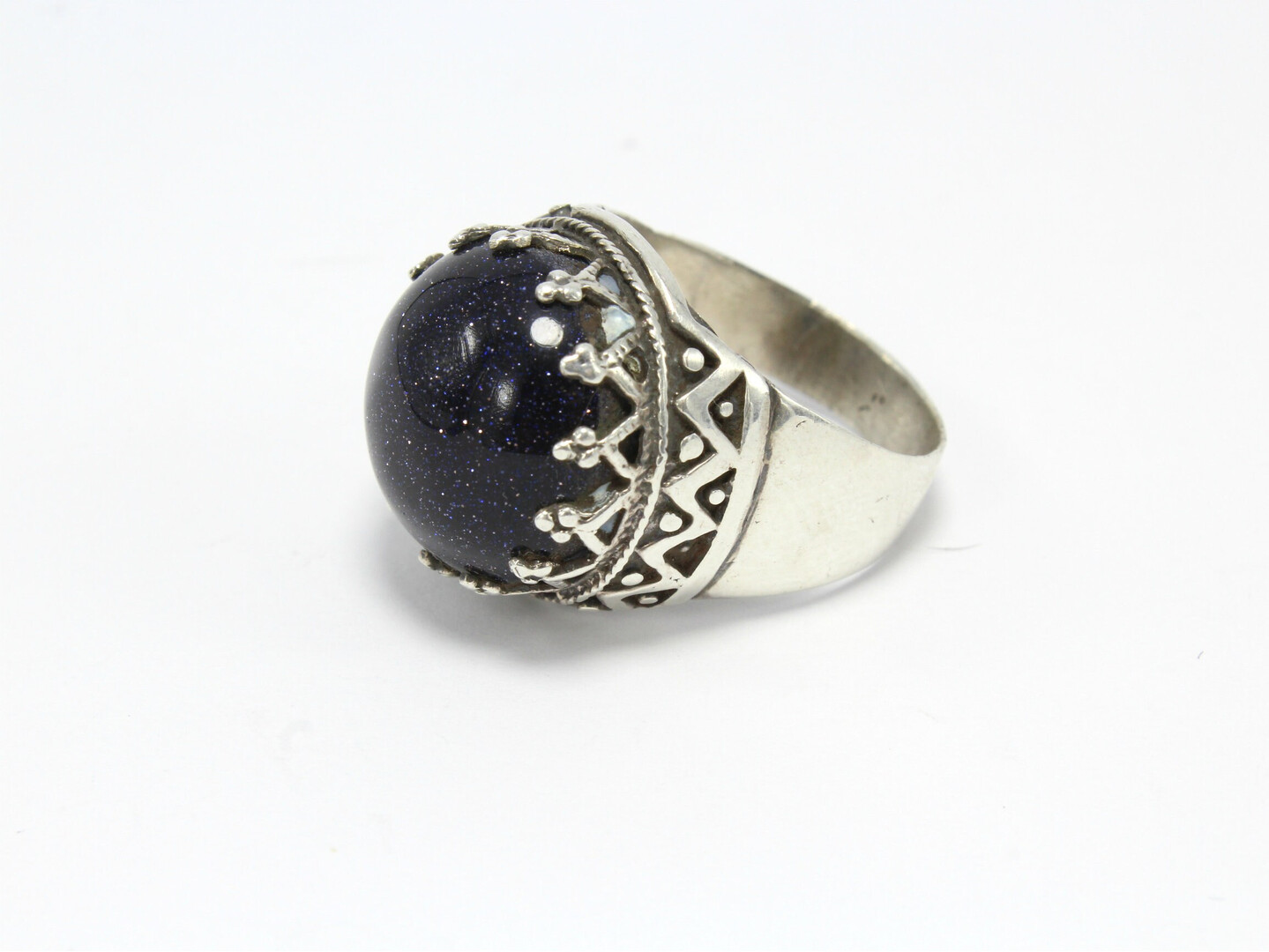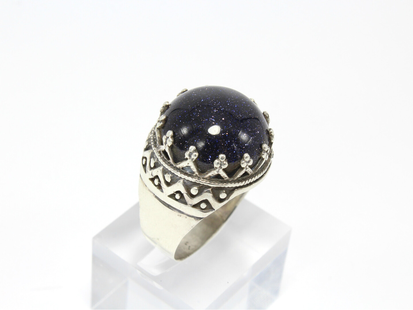 Sterling Silver 925 Men's Blue Aventurine Crown Ring Jewelry, Gifts For Men, Signet Statement Ring, Armenian Jewelry