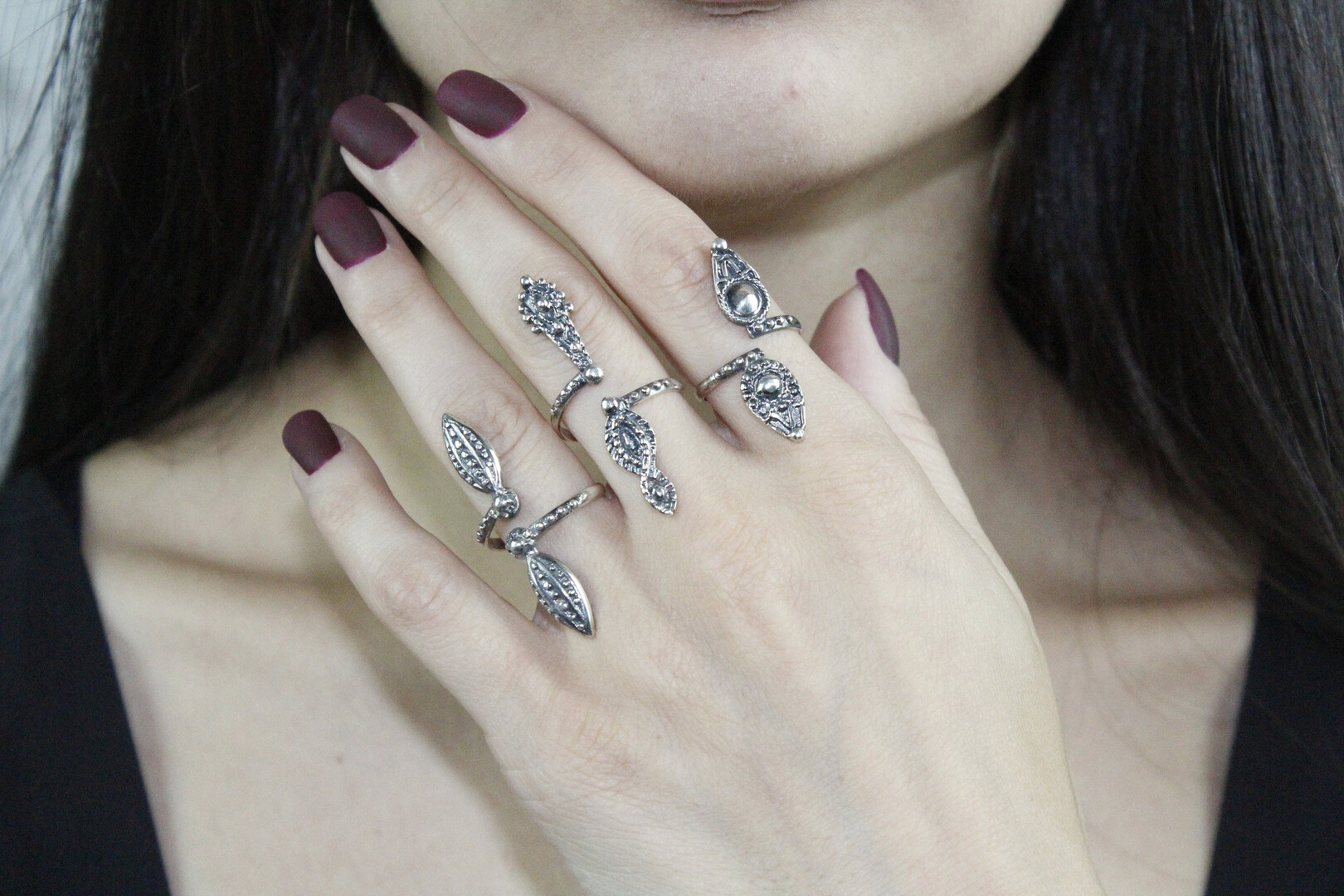 Sterling Silver Adjustable Rings Set Full Finger Long Boho, Chunky Ethnic Ring, Middle Finger No Stone Ring, Everyday Ring, Armenian Jewelry