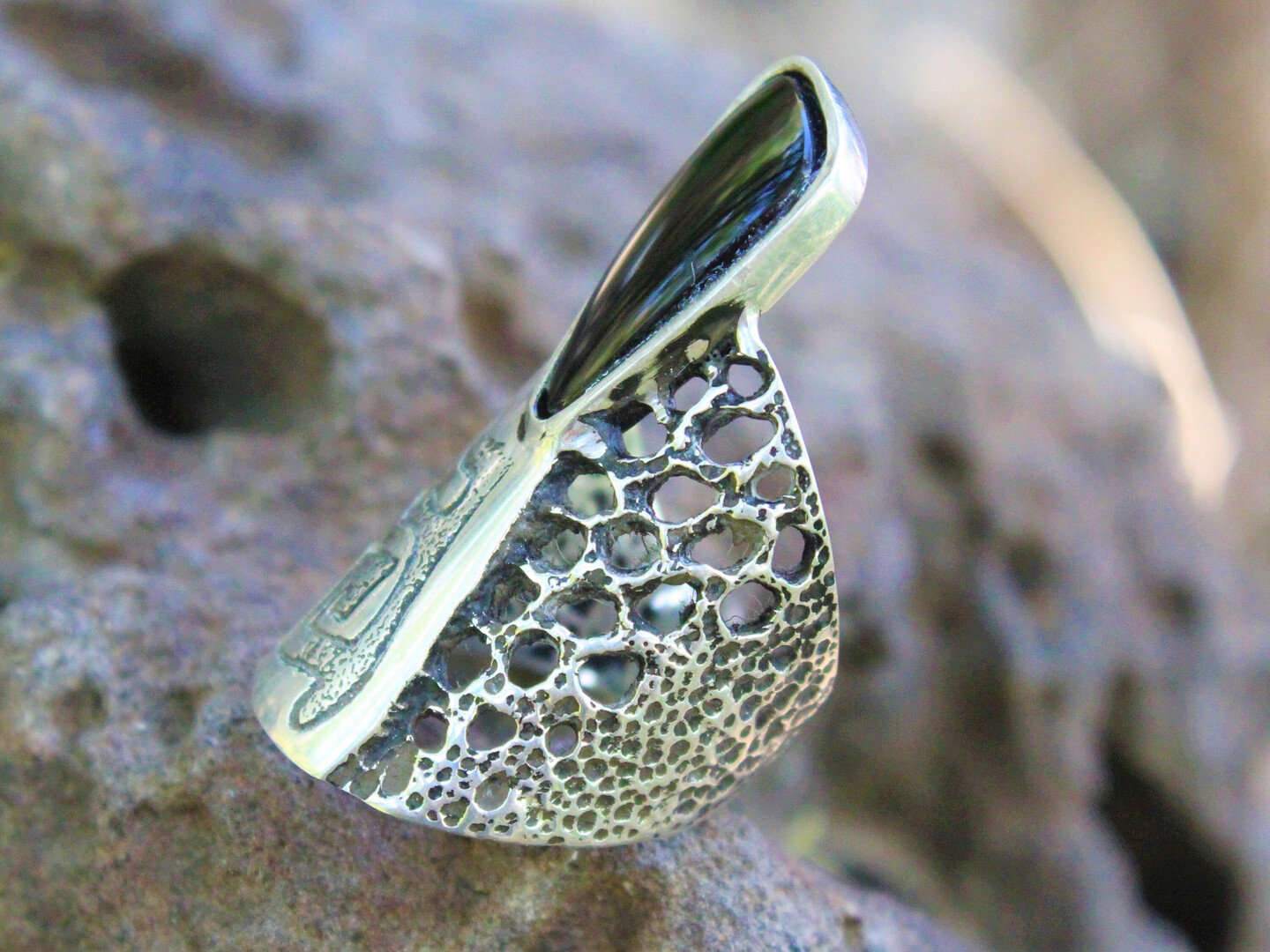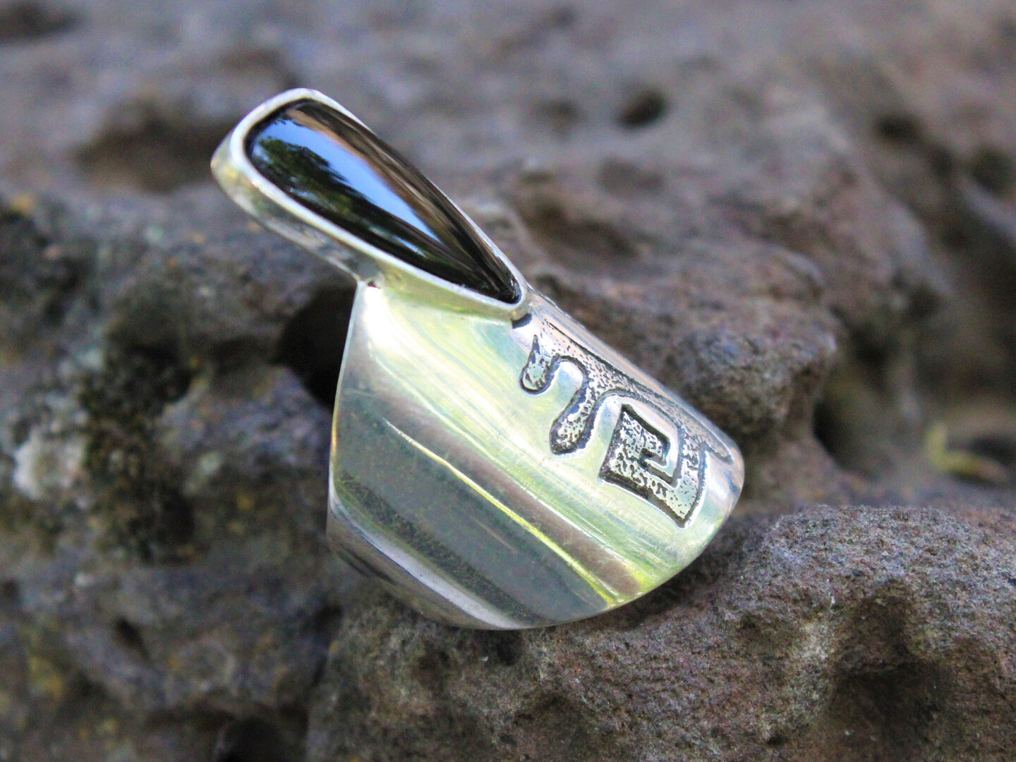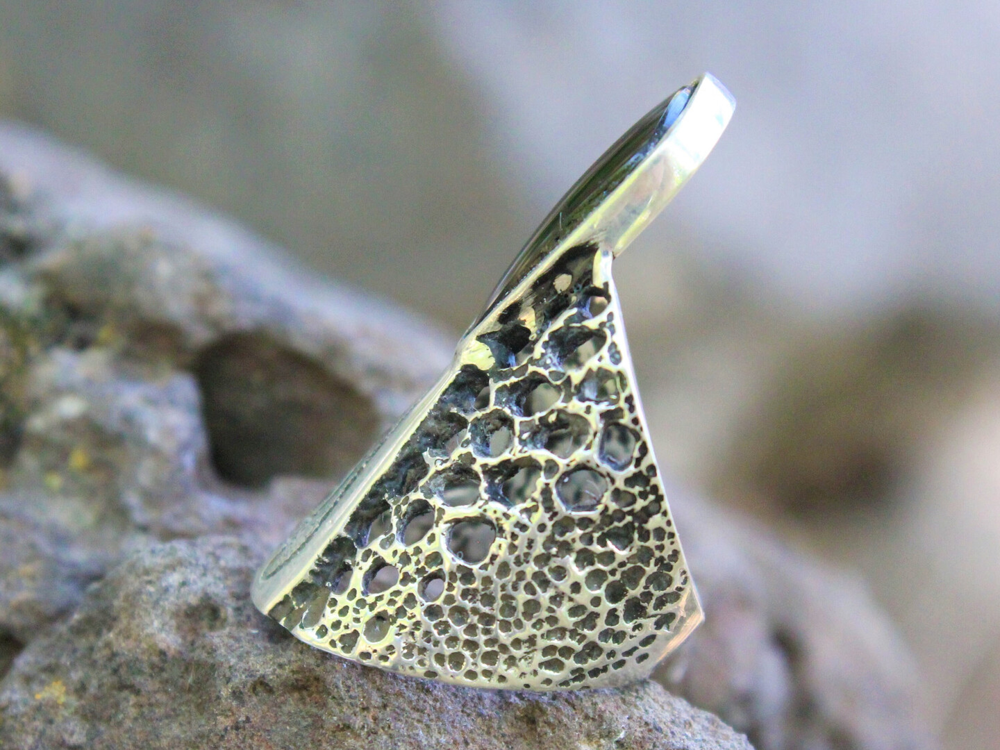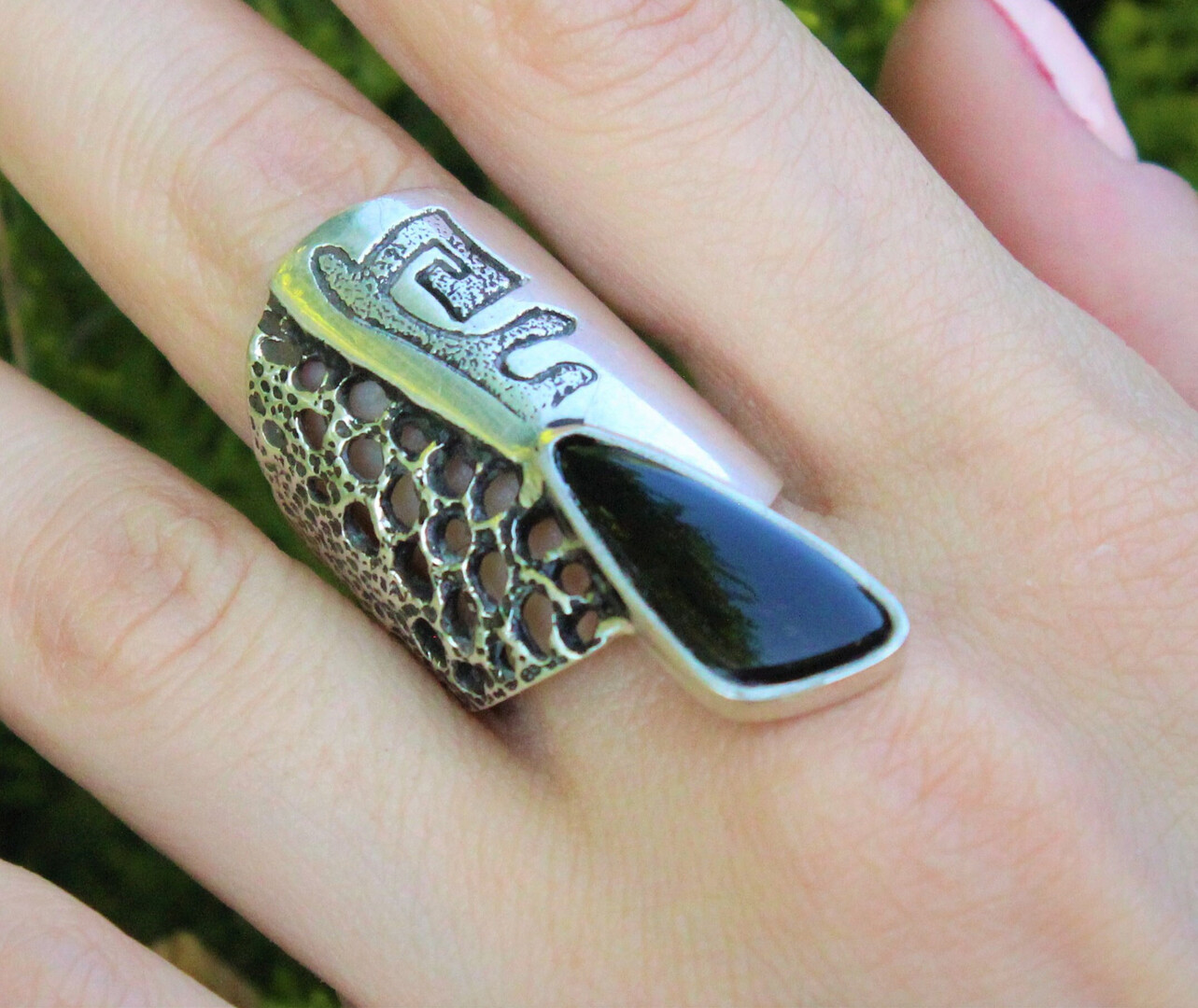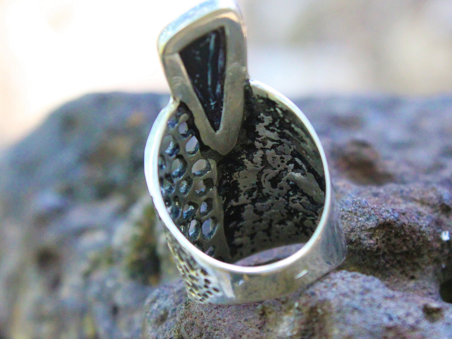 Sterling Silver Black Agate Stone Boho Unique Band Ring, Statement Nature Signet Chunky Thick Armenian Jewelry