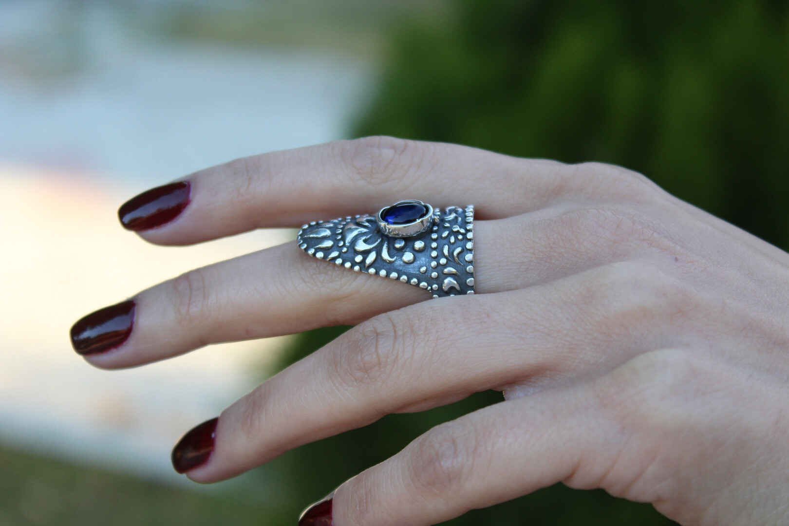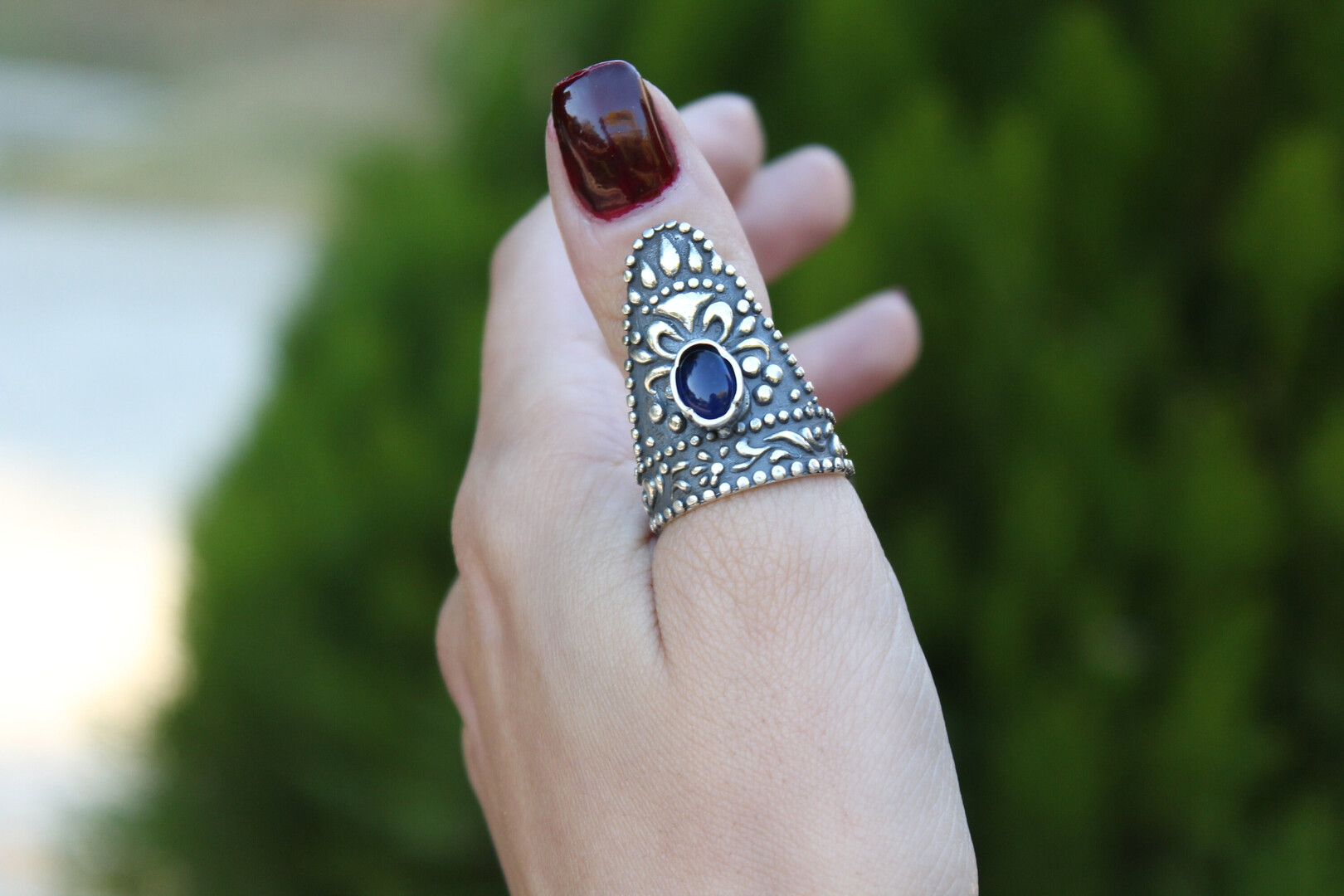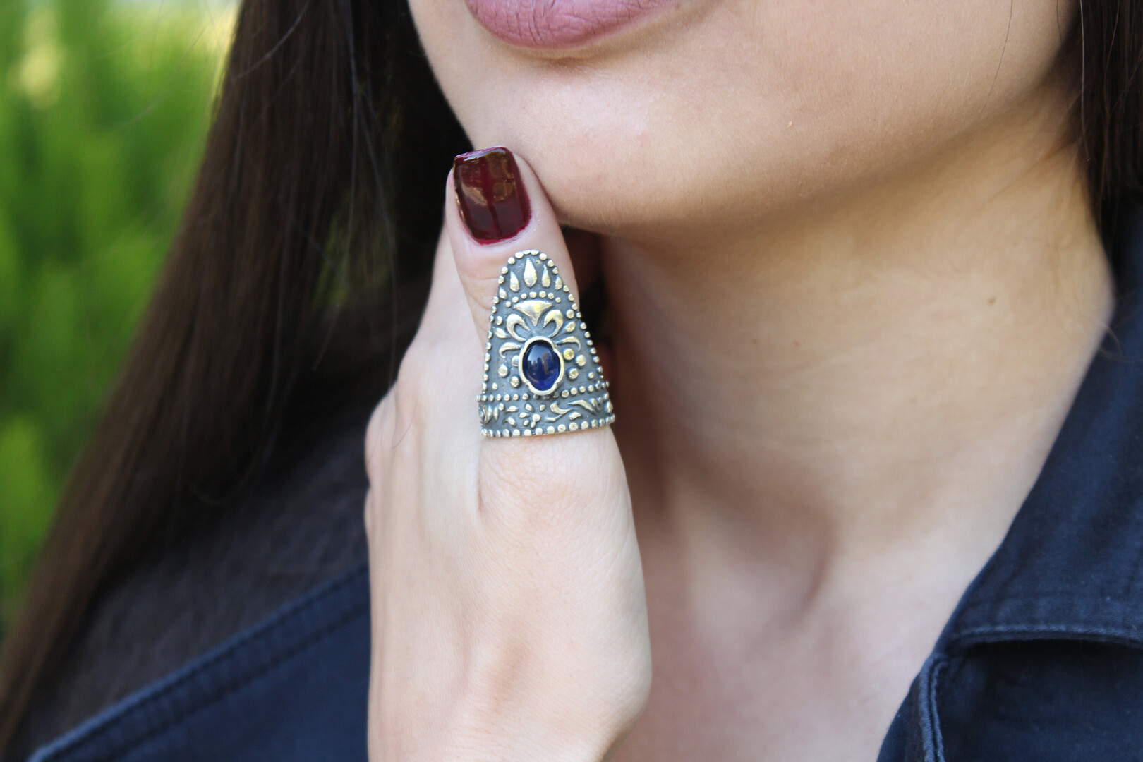 Sterling Silver Blue Gemstone Ethno Style Ring, Adjustable Thumb Ring, Gift For Her