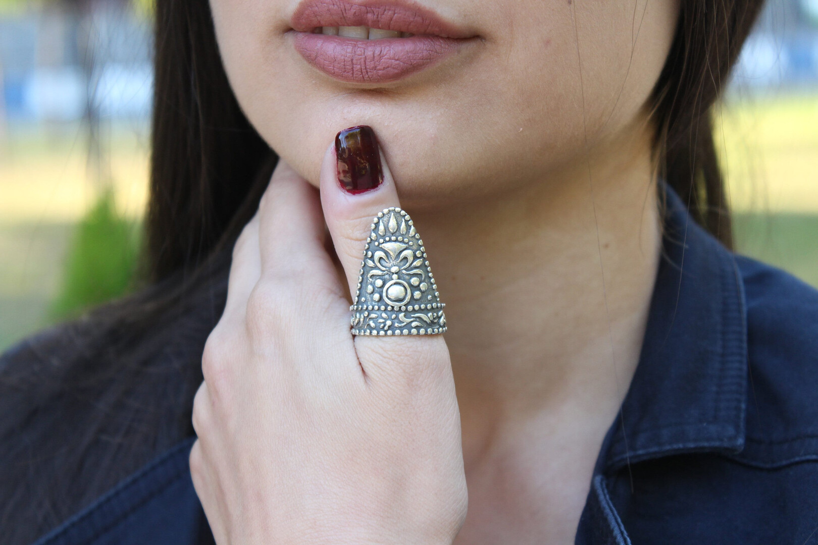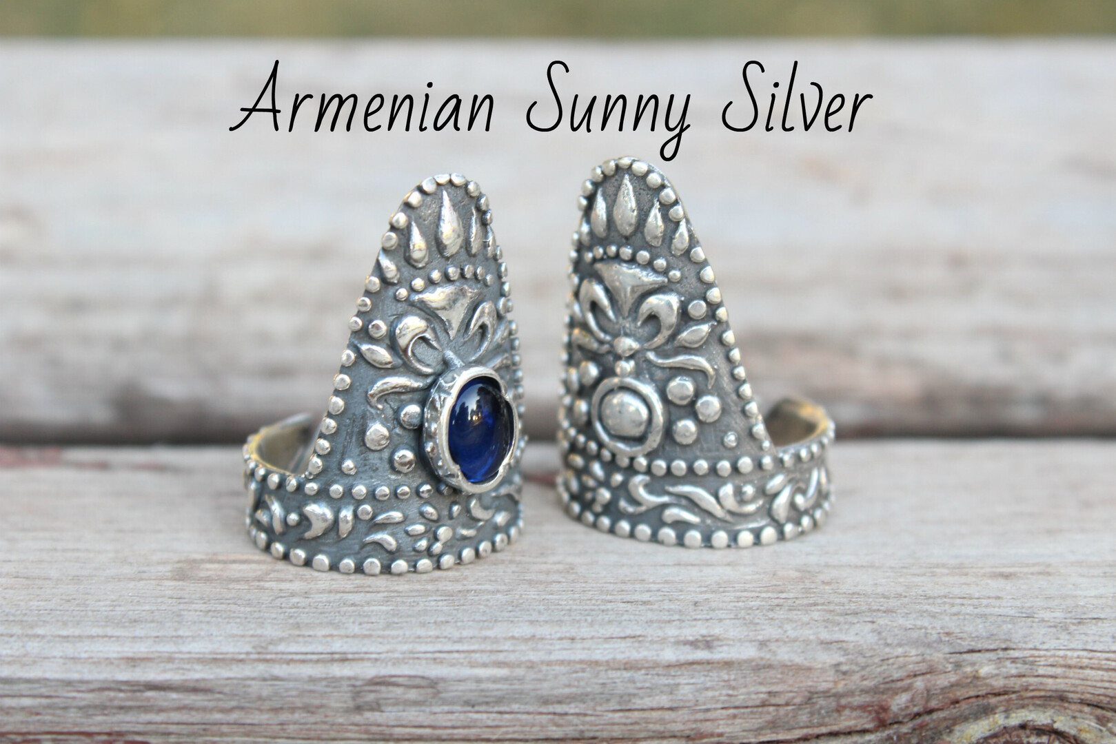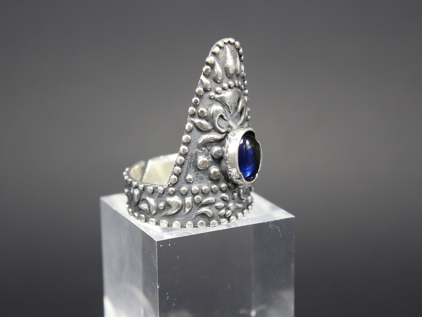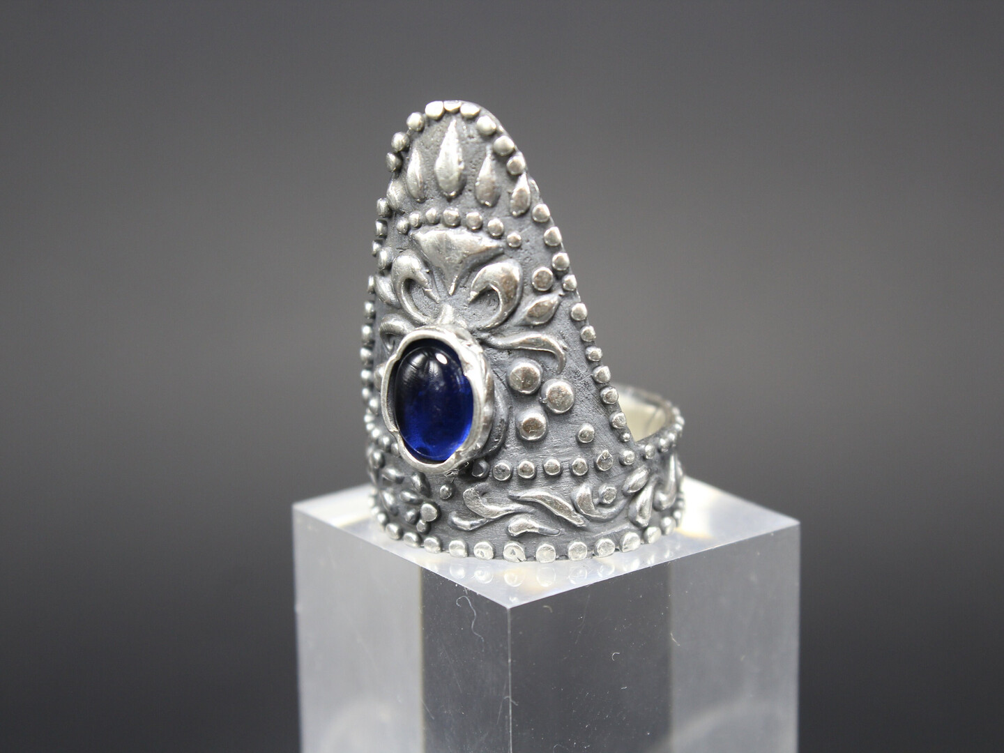 Sterling Silver Blue Gemstone Ethno Style Ring, Adjustable Thumb Ring, Gift For Her