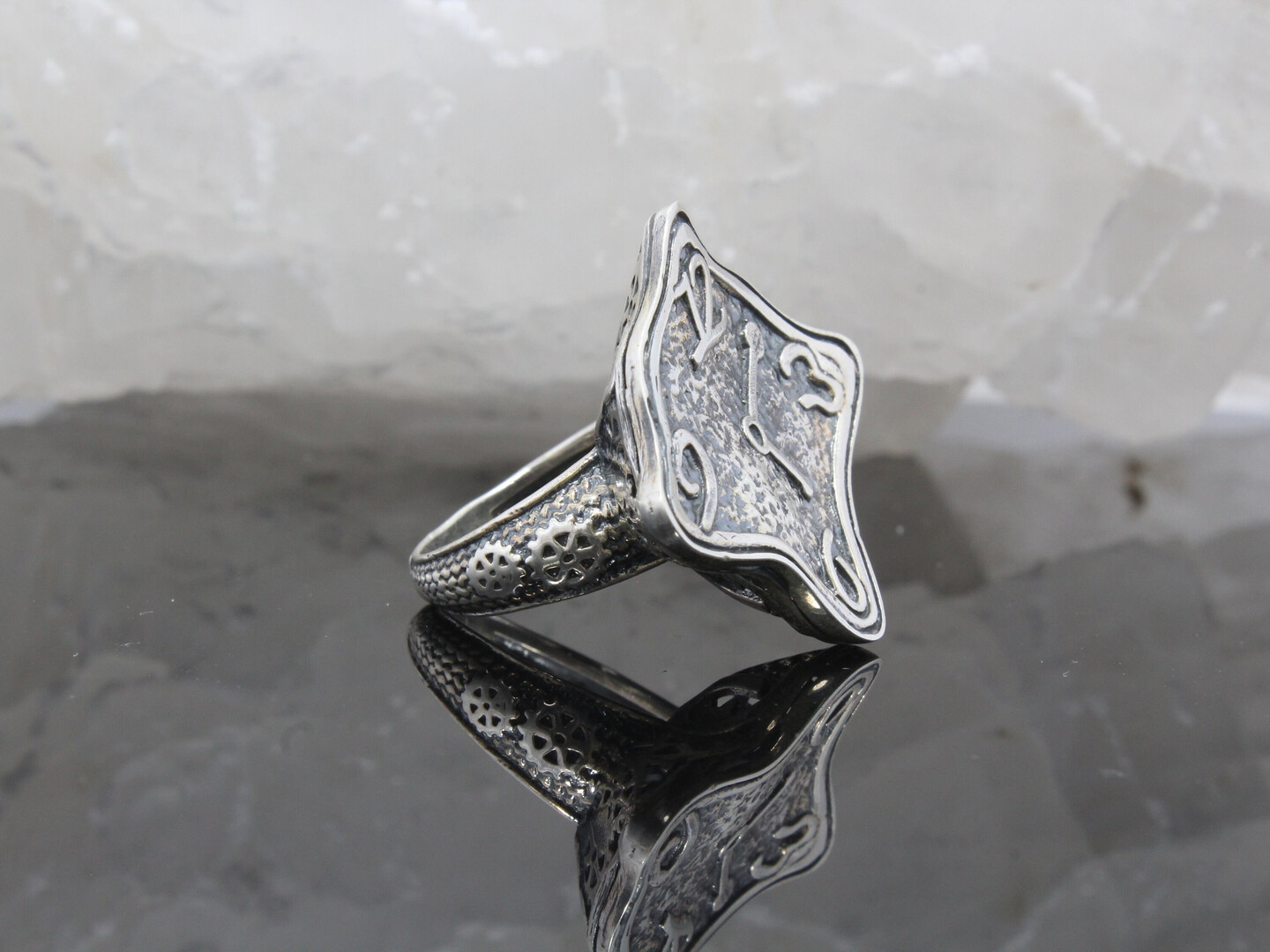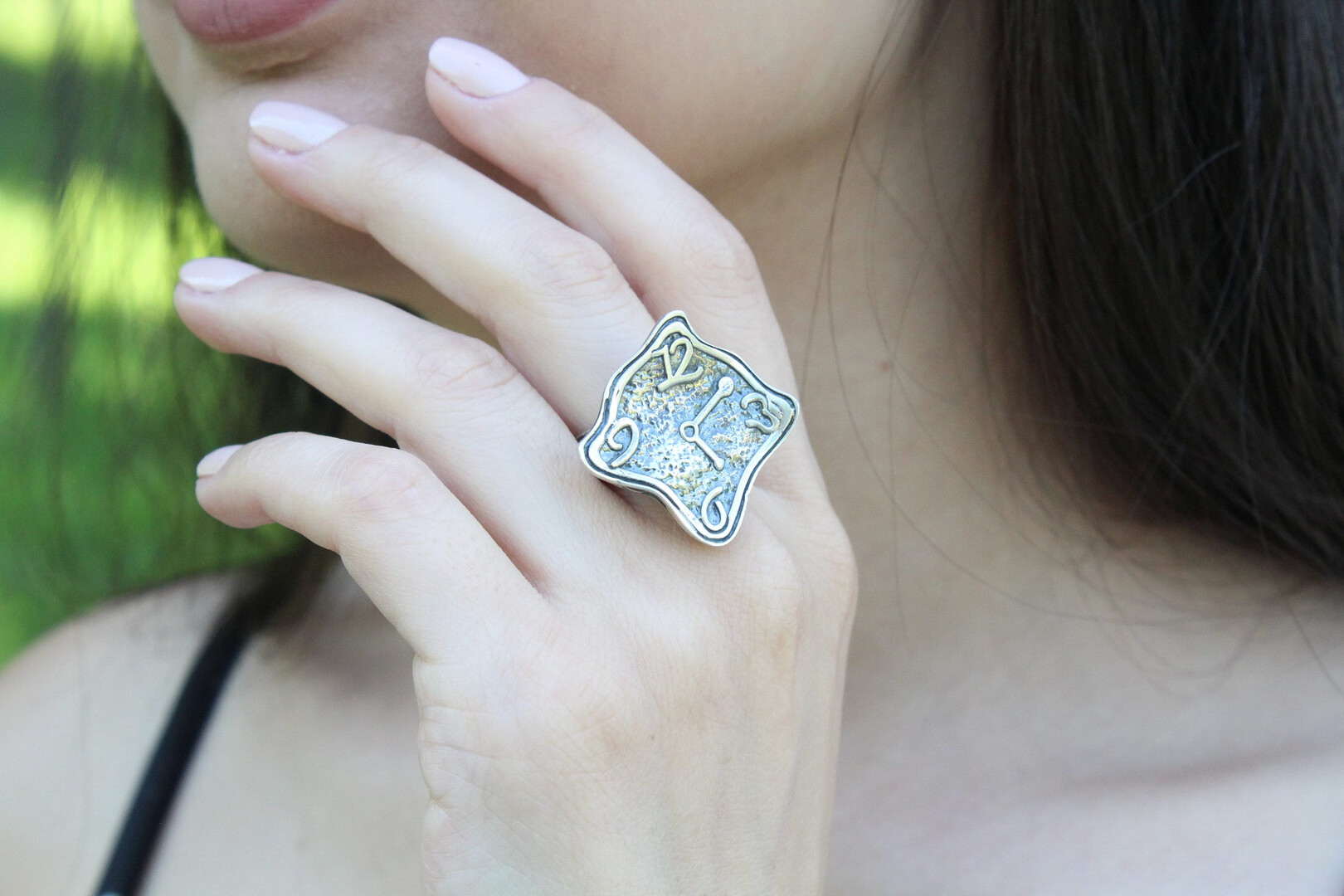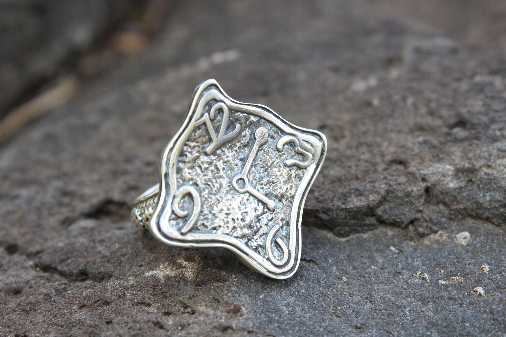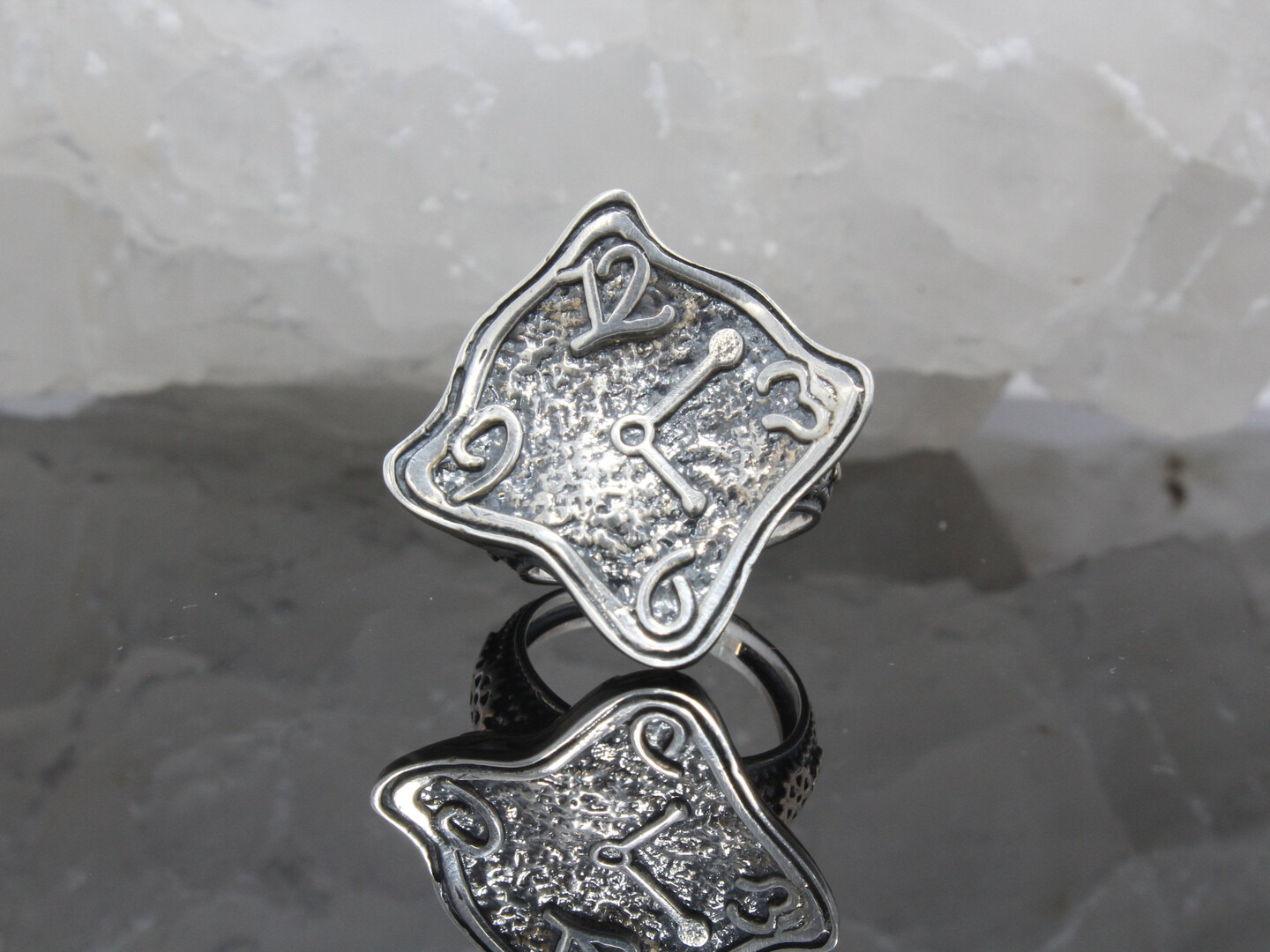 Sterling Silver Clock Watch Boho Unique Cool Thumb Ring, Dainty Statement Spinner Armenian Jewelry