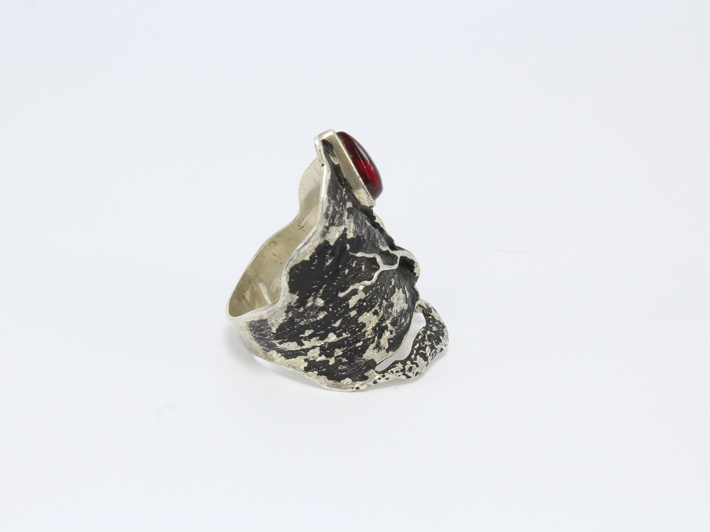 Sterling Silver Garnet Gemstone Boho Thumb Gothic Chunky Ring, 925 Statement Nature Art Deco Thick Armenian Jewelry