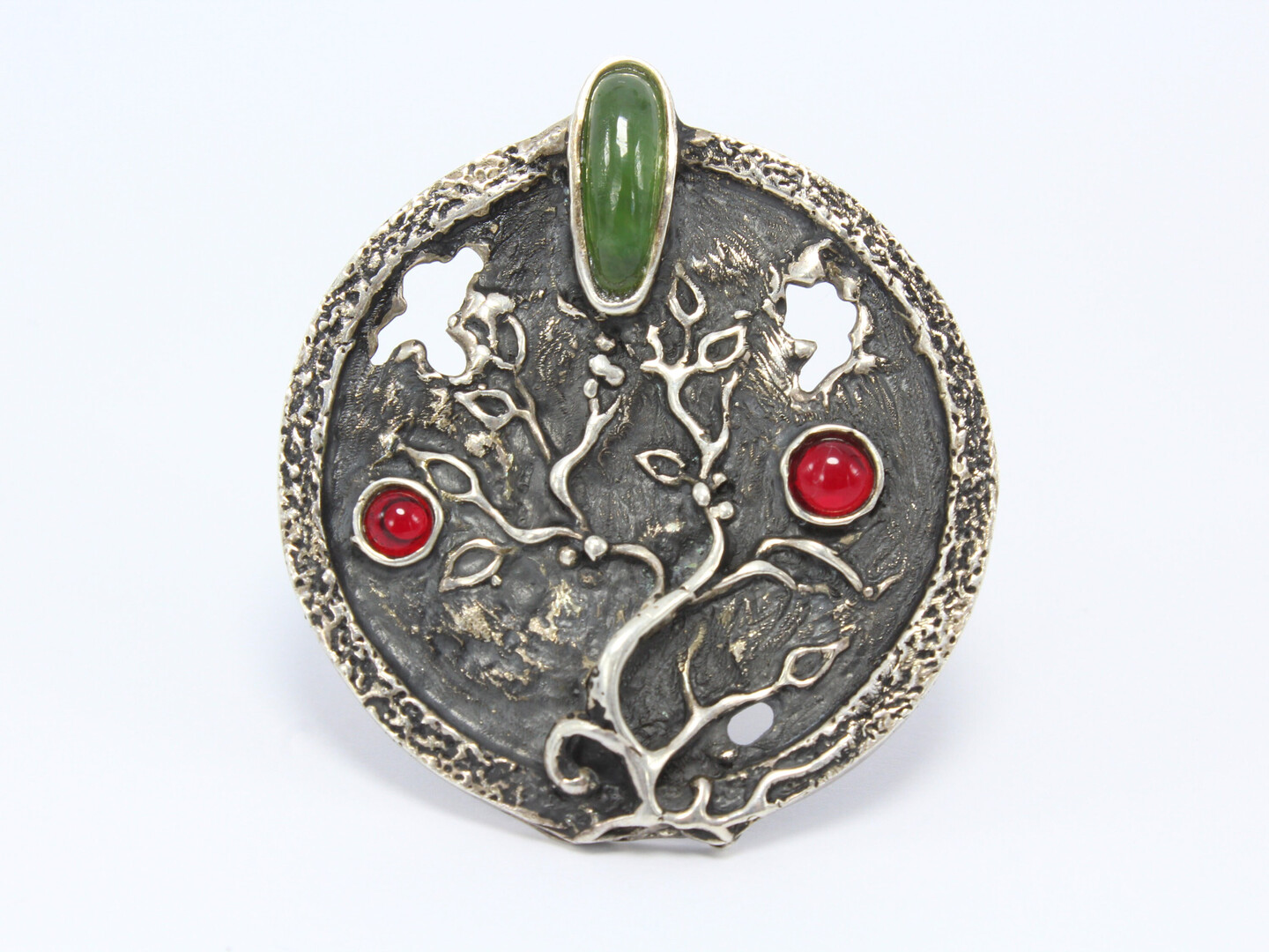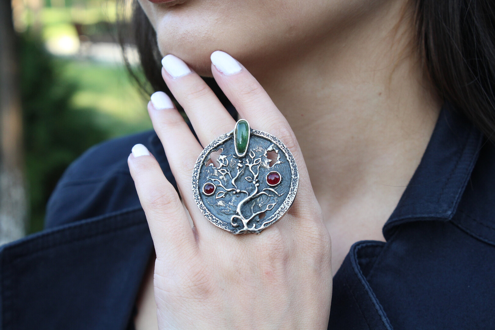 Sterling Silver Tree Big Boho Unique Gemstone Circle Ring, Statement Nature Chunky Grunge Thick Armenian Jewelry