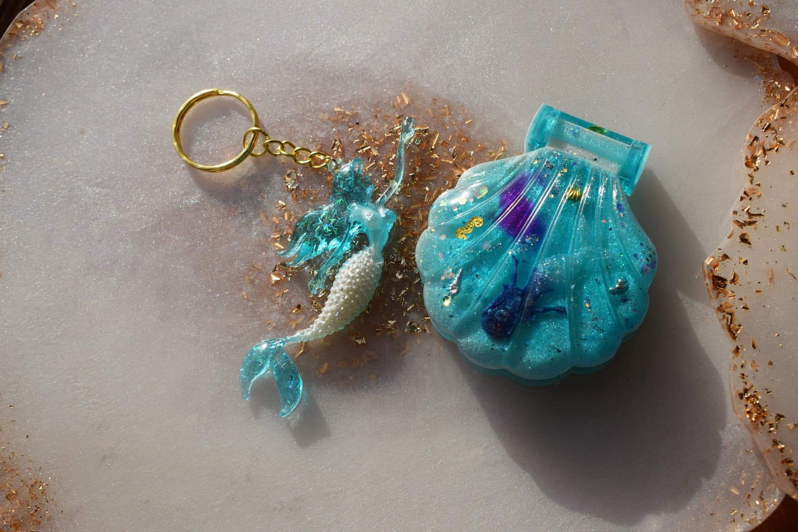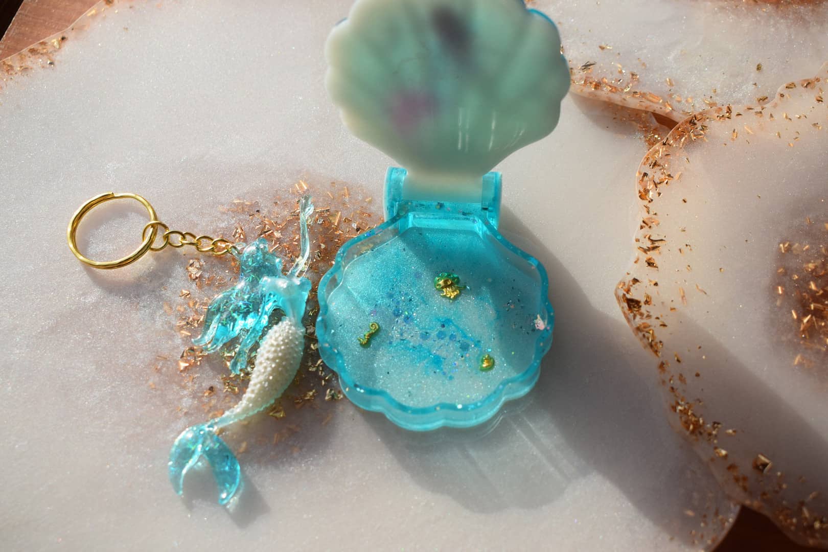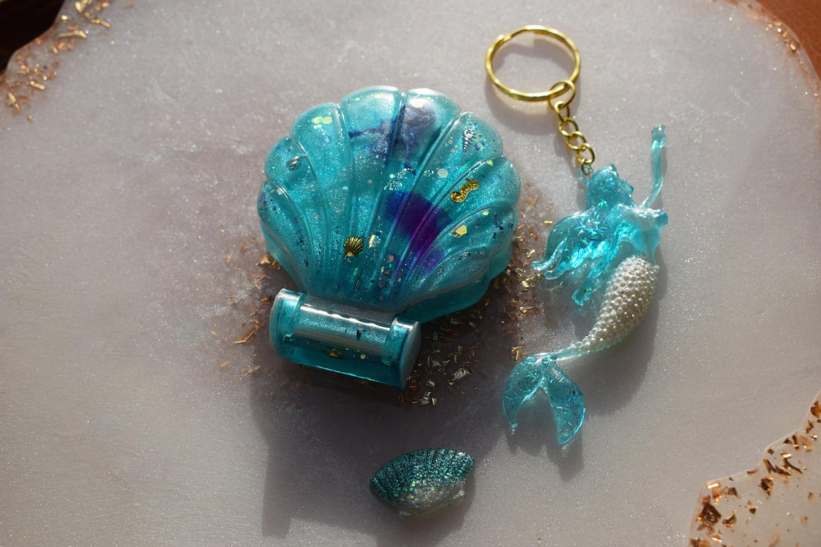 Home/Jewelry & Watches/Matching Set Ocean World Resin Keychain Gift box Marry me Resin Mermaid Resin Casket Resin Hand Mirror Cute resin Gift Cool resin Things Art