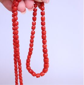Antique Faceted Red Coral Necklace 18k Gold Clasp This is faceted coral necklace from natural red color, undyed coral beads.The necklace has been restrung on a new strong threads. The clasp is made from yellow and white gold, marked as 750. Tested as gold 18k. Made in Italy. Very beautiful necklace! Excellent quality coral! Size of beads: 10mm – largest bead, 7- 6mm – medium beads and 5mm – the smallest bead. Length: 64cm (25,6in ) Weight: 51gr Condition: excellent