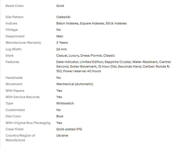 The watch is made in Ukraine on the basis of the Swiss gold-plated mechanism.