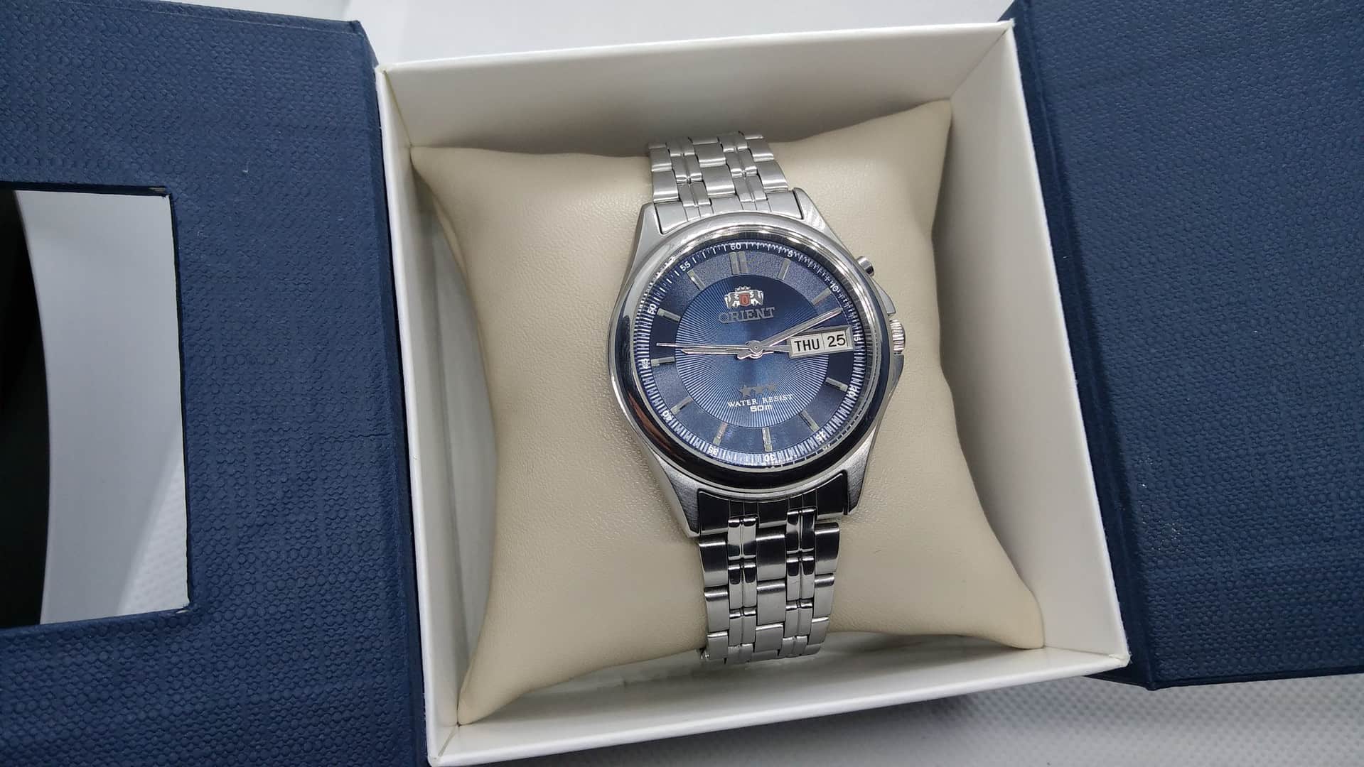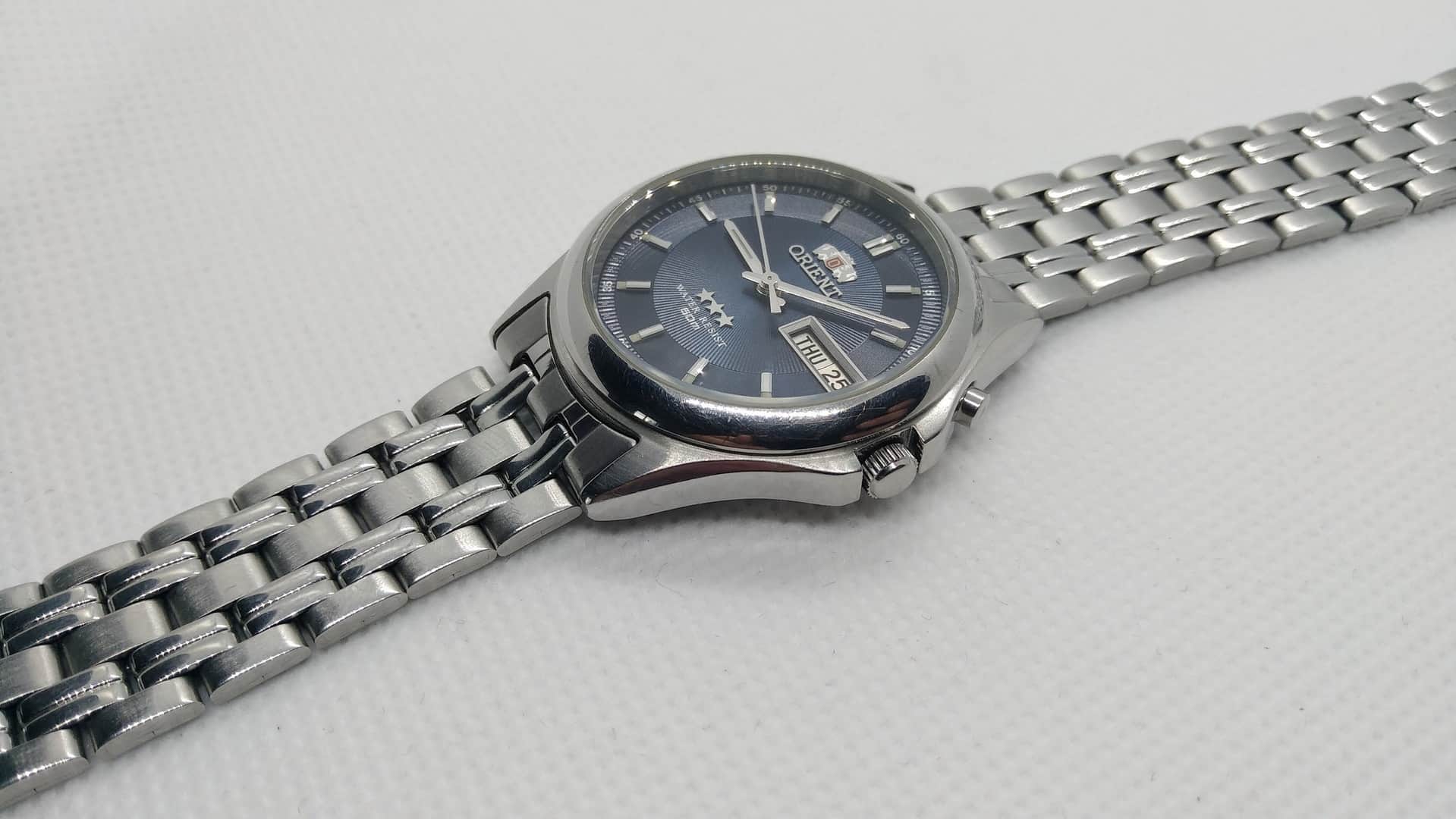 Vintahe orient watch, automatic watch, japan watch, mechanical wristwatch, blue watch,