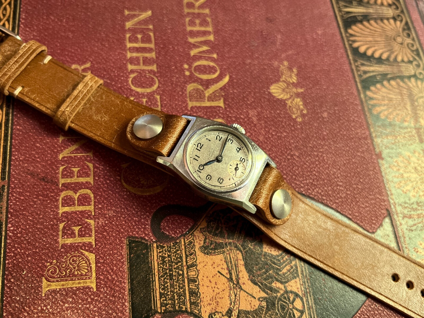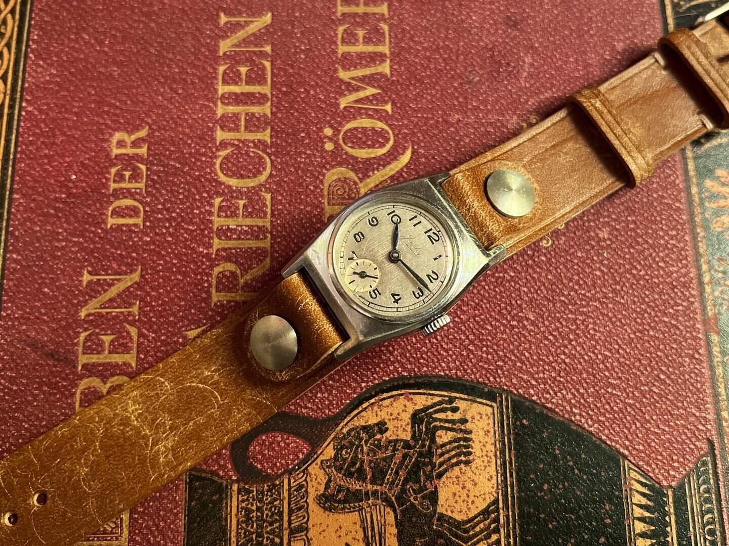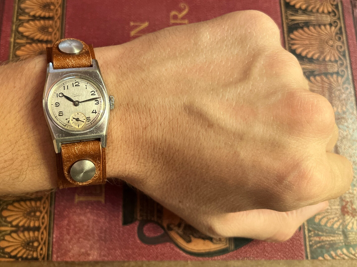 GENTS BWC RECTANGULAR RARE SWISS  MILITARY  WRIST WATCH  - WWII PERIOD OF PRODUCTION AND MILITARY DESIGN, LOOKS ACTUALLY NOWADAYS BY SHAPE DESIGN AND DIMENSIONS - MECHANICAL MOVEMENT 15 JEWELS - STAINLESS STEEL BACK. CHROMED CASE 26mm width X 38mm lengh   LUGS WELDED 18mm  - STRAP IS NEW HAND MADE GENUINE LEATHER - EXCELLENT CONDITION! SERVICED, WORKS WELL, KEEPS ACCURATE TIME - WILL BE SHIPPED WITH STANDARD AIR MAIL WITH TRACKING NUMBER IF YOU NEED SOME ADDITIONAL INFO PLEASE CONTACT WITH ME AND I'LL BE GLAD TO ANSWER WELCOME TO MY STORE!