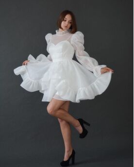 Chic short boho wedding dress! ???? Perfect for a small wedding ceremony or any other evening event. The dress is made of organza. This special dress will make your day unforgettable❤ Possible tailoring to order with your measurements and some changes. We guarantee the quality of tailoring at the highest level! Please contact me for details. Before ordering, please check the details of the tailoring and delivery time CUSTOM MEASUREMENTS Wedding or Event Date: __________ Color: As in Picture or Custom Color: __________ Your height _____________; Bust ___________; Waist circumference ___________; Hip girth___________; Skirt length from waist to bottom (including shoes) __________; The length of the skirt from the waist to the bottom at the back (including shoes) ____________; Arm length (from shoulder to wrist) __________; Wrist circumference __________