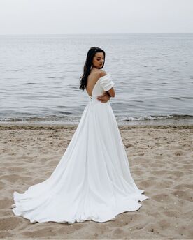 A lovely off-the-shoulder wedding dress in a minimalist style. A-line dress is made of satin. A classic and trendy outfit that will never go out of style❤ Possible tailoring to order with your measurements and some changes. We guarantee the quality of tailoring at the highest level! Please contact me for details. Before ordering, please check the details of the tailoring and delivery time CUSTOM MEASUREMENTS Date of wedding or event: __________ Color: as picture or custom Color: __________ Your height________ Shoulder girth_______ Girth over bust ________ Bust: __________ Breast cup size_________ Under bust: __________ Waist: __________ Hips: __________ Length from waist to bottom in front (including shoes) ________ Length from waist to bottom back _______ Bicep girth _______ Arm length from wrist to shoulder _______ Your height________ Setting Description (Only When Needed): __________