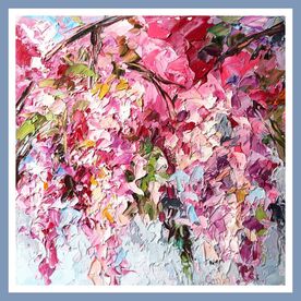 Small abstract blossom oil painting style impasto"Sprinh bloom". This painting is part of my collection of gift paintings for loved ones and loved ones. It is small, but sweet and touchingly emotional and can become an unforgettable romantic gift. This cute picture is for gifts to your friends or people dear to you. And also for collections of small pictures in your home. Size without frame 8x8 inches (20x20 cm). 100% handmade! Not a print. This artwork of mine was made on a wood hardboard. The painting is sold unframed.  The painting is alive with a symphony of Bouquets and colors—soft pinks, and ethereal whites, reminiscent of lilacs and wisterias in full bloom. Each stroke of the palette knife creates a textured tapestry of petals as if they were delicately scattered across the canvas by gentle hands. As you gaze upon "Spring Bloom," let yourself be transported to a world of tranquility and serenity. Feel the warmth of the sun on your skin, hear the gentle rustle of leaves, and immerse yourself in the beauty of nature's tender embrace. The picture was painted on the surface of the hardboard. Large textural strokes cover the entire surface. The drawing is titled and signed on the back. Oil paints are of high quality, so my painting will serve you for many years. The painting is protected from UV rays and varnished. During the transportation of oil painting, I pack the picture into a very strong box. Please take into consideration that your PC monitor, mobile phone, or tablet screen may display colors/hues slightly cooler or warmer. Please do not hesitate to ask me any questions and I'll get back to you at the earliest opportunity. Thanks for visiting my Shop!