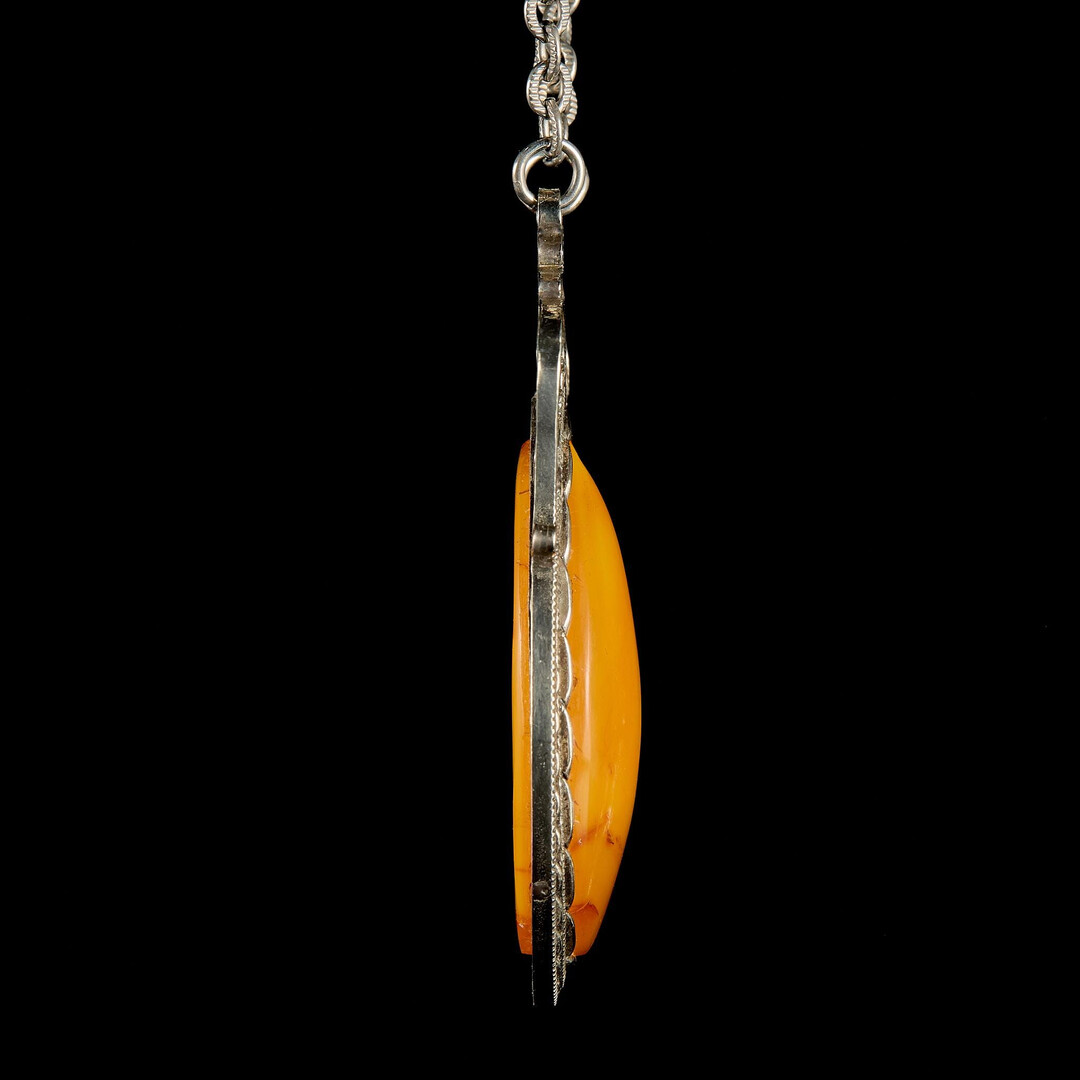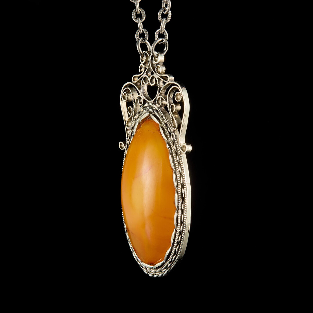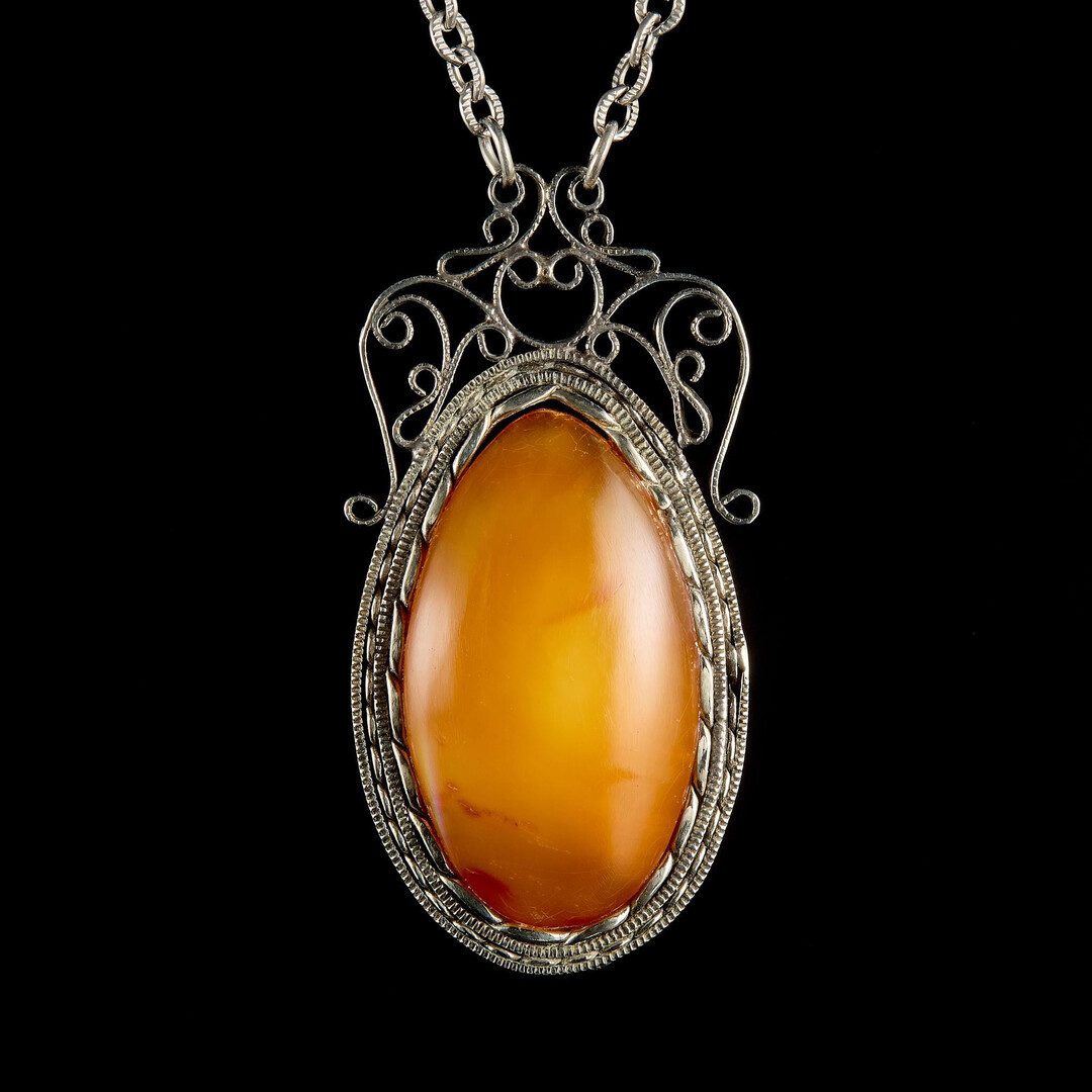 Antique Necklace Amber Real Baltic Filigree Vintage Amber Pendant USSR Necklace Jewelry Cognac Honey Butterscotch Amber USSR