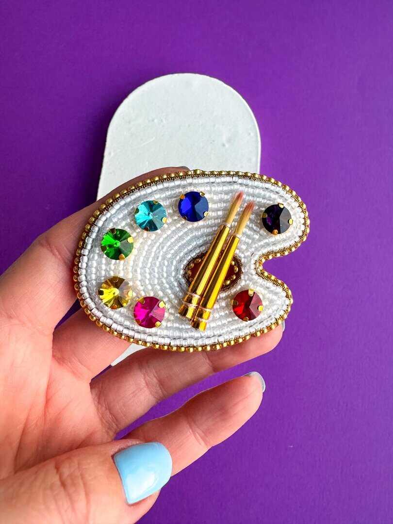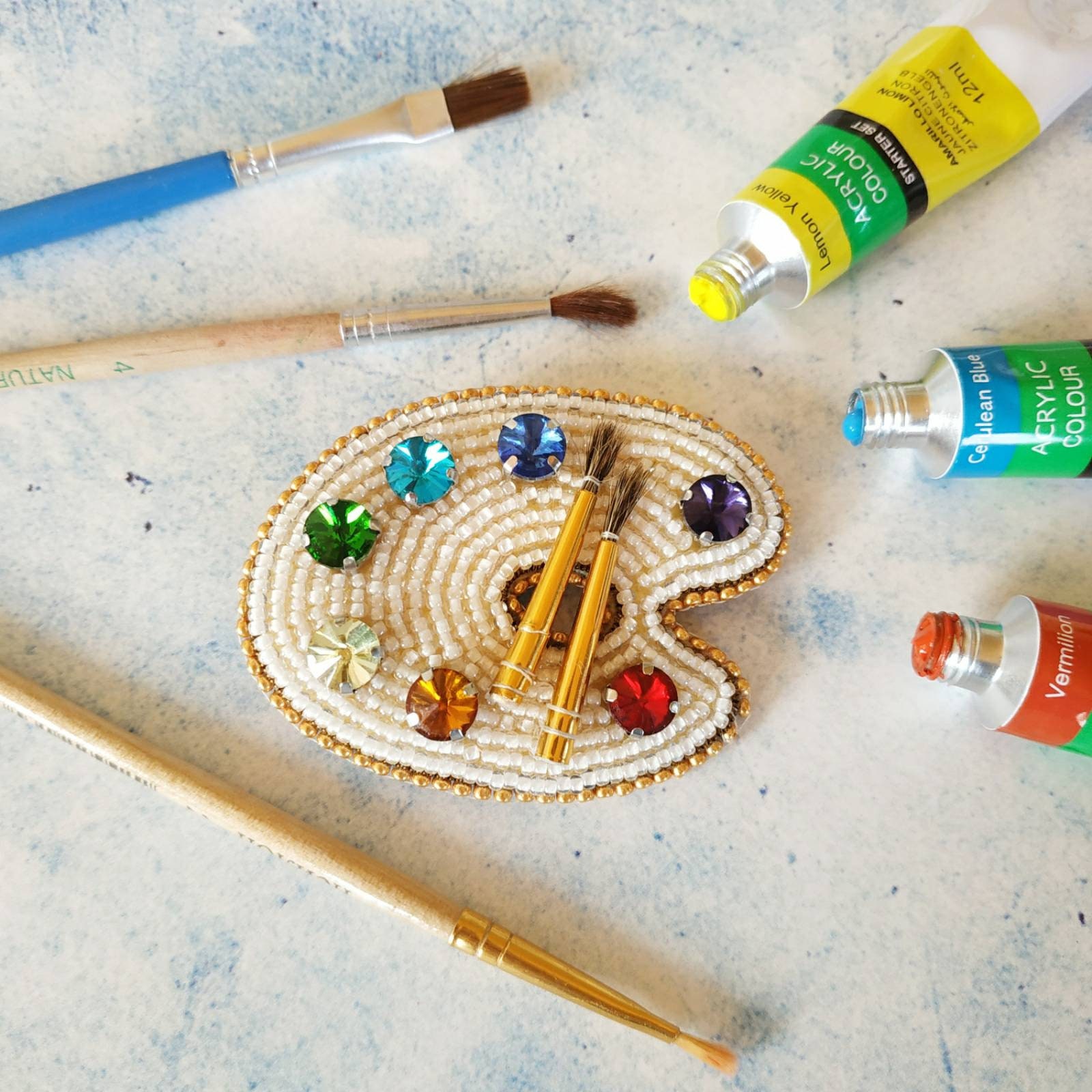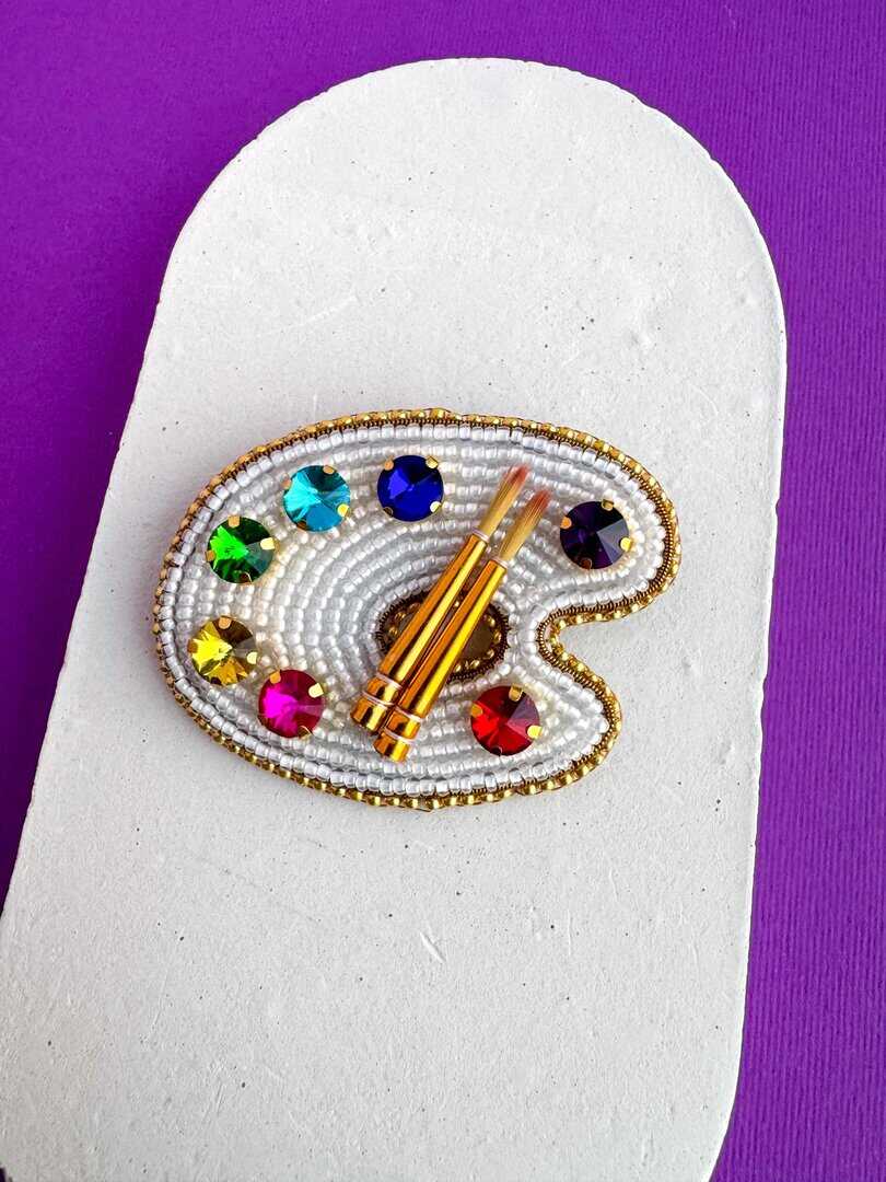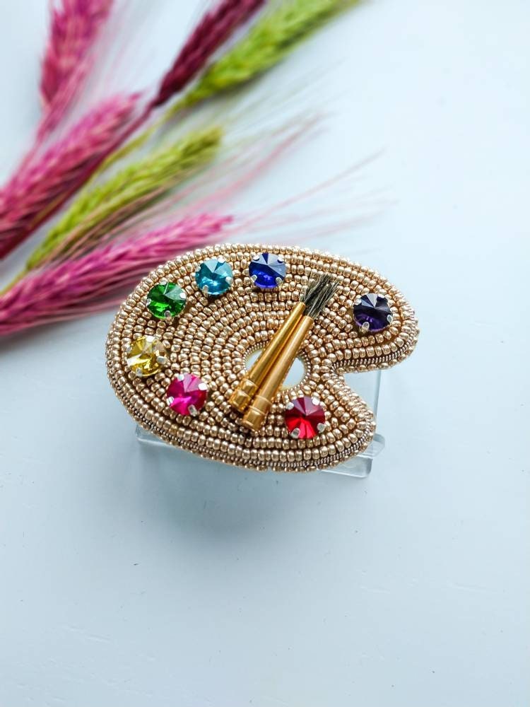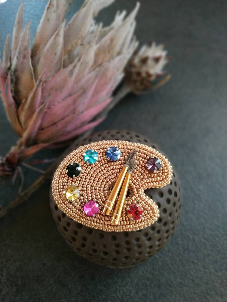 Beaded brooch for painter, colors palette, gift for painter, unique gift for her, beaded palette brooch, embroidered jewelry artist gift