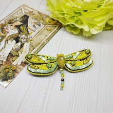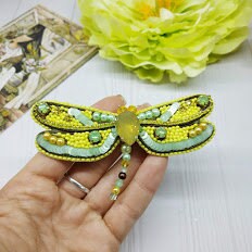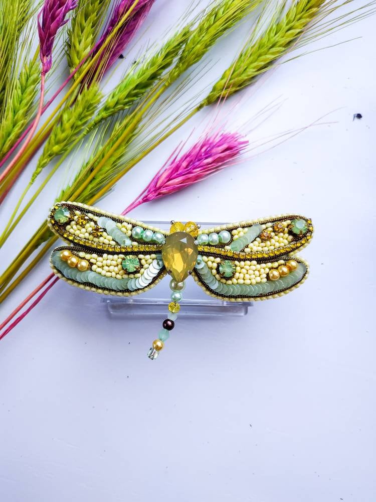 Beaded Dragonfly Brooch: Handmade Embroidered Insect Jewelry