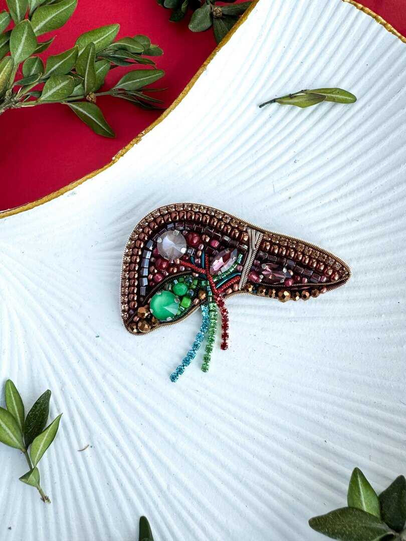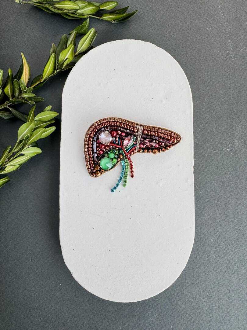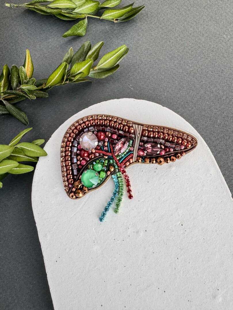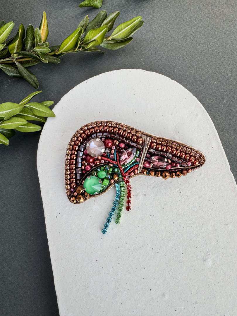 Beaded liver brooch doctor jewelry handmade in Ukraine