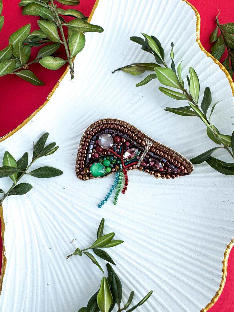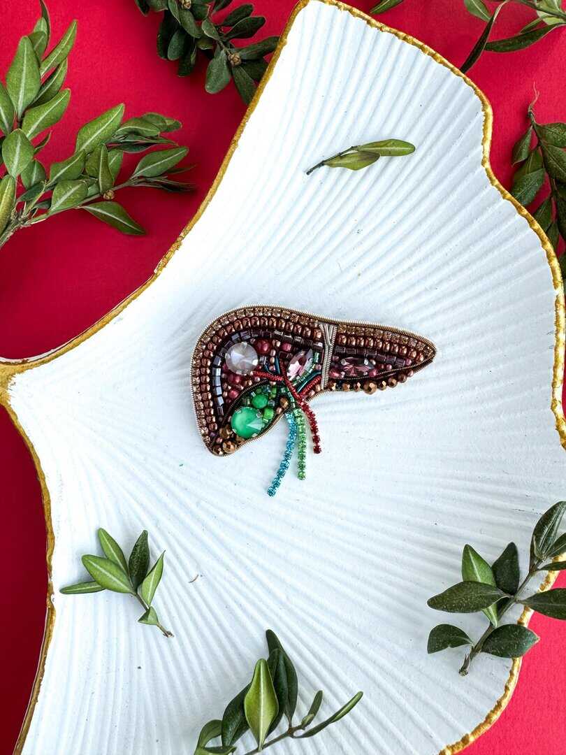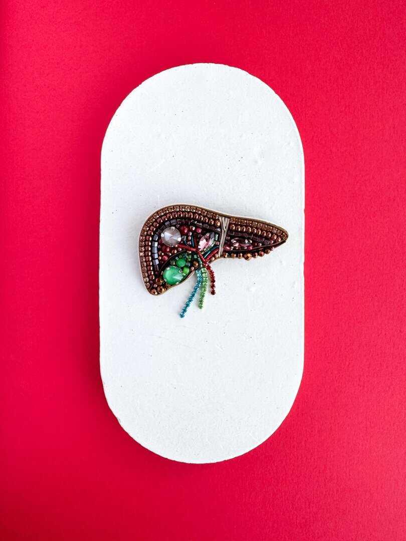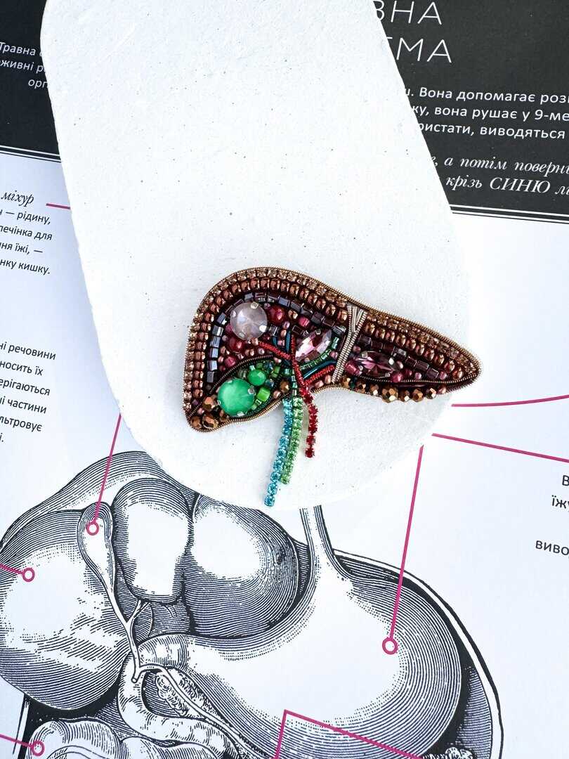 Beaded liver brooch doctor jewelry handmade in Ukraine