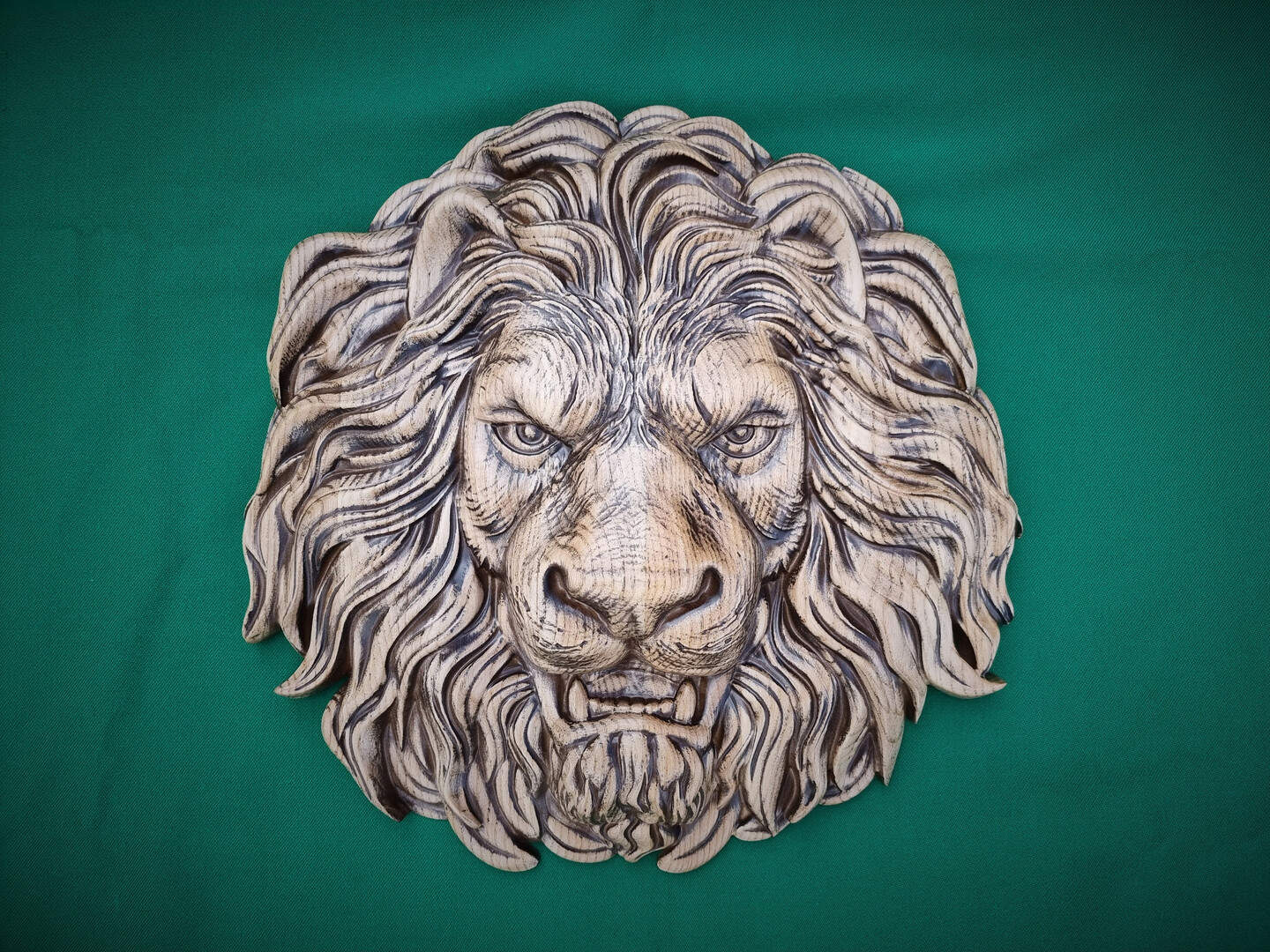 Beautiful Lion Head of wood, Painted, 1pc, Applique furniture decor DIY Furniture Trim Supplies wall ornaments pediments