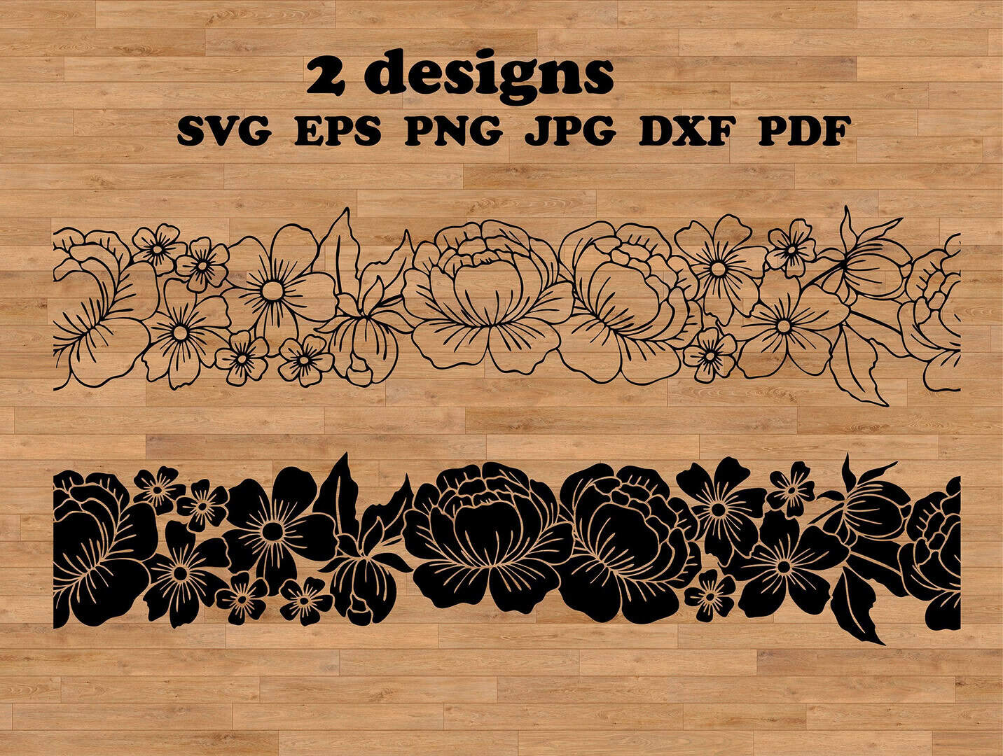 Border peonies Svg, seamless border, peonies svg, wedding border svg, Flower Border Svg, flower bundle svg, roses svg