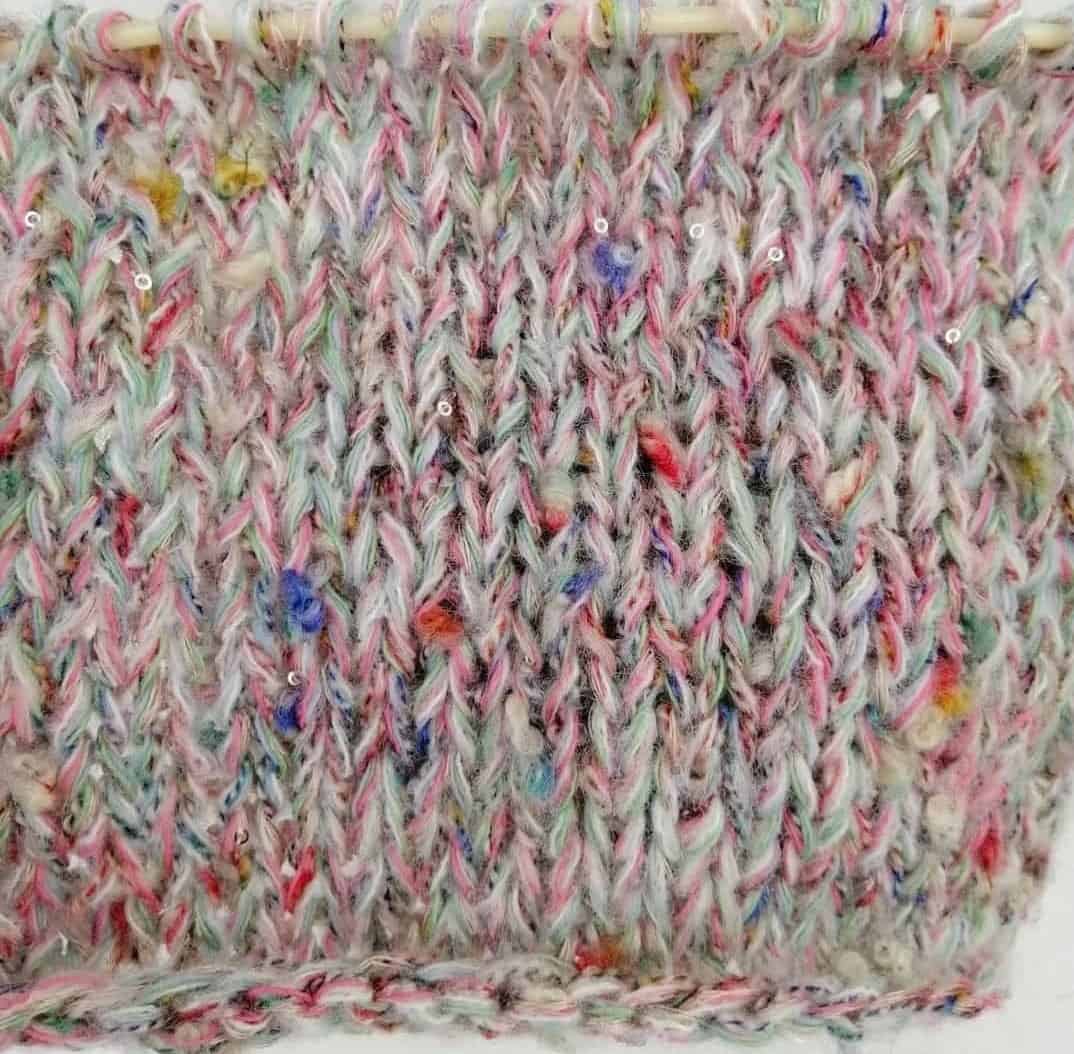 Yarn composition: 40% merino wool, 10% kid mohair, 10% cashmere, 35% pa, 5% sequins