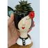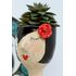 Ceramic mini head planter, unique face flower pot, retro lady with a rose, gift for desk decor