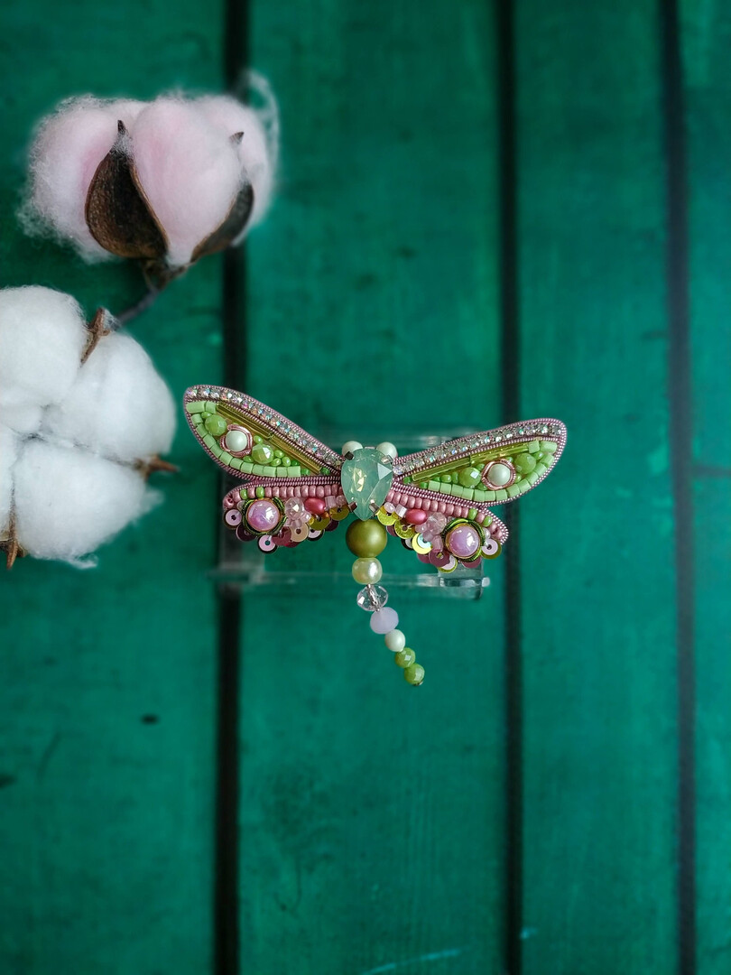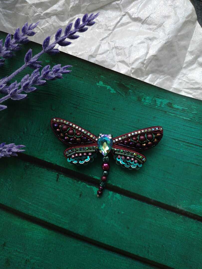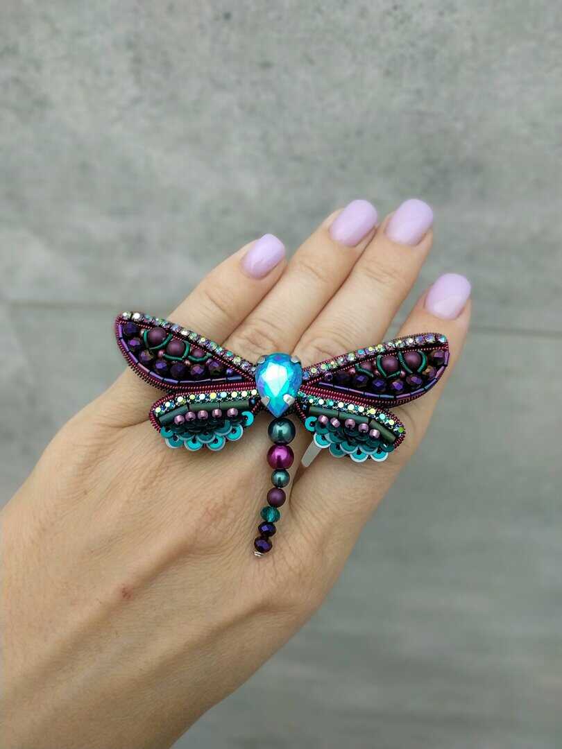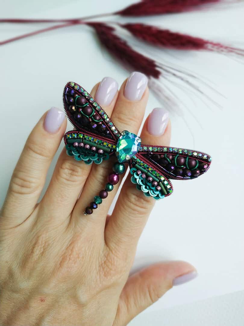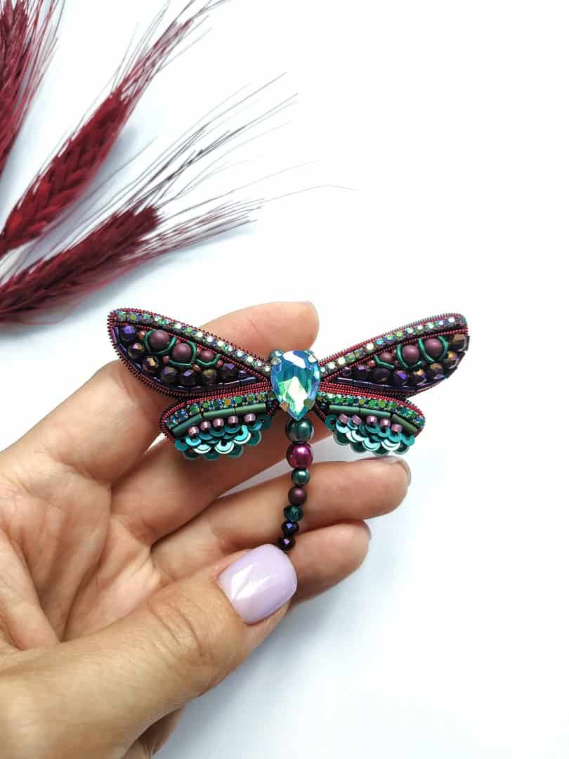 Embroidered dragonfly brooch beaded pin insect handmade jewelry unique Christmas gift for her butterfly lover jewelry handmade dragonfly pin