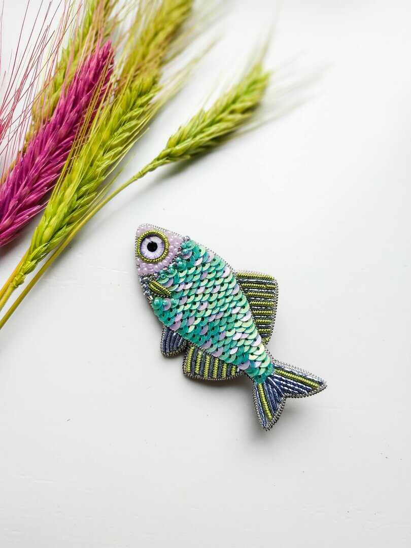 Embroidered sequins fish brooch beaded pin handmade gift for her fish lover gift pisces sign sequins jewelry seed beads and sequins brooch