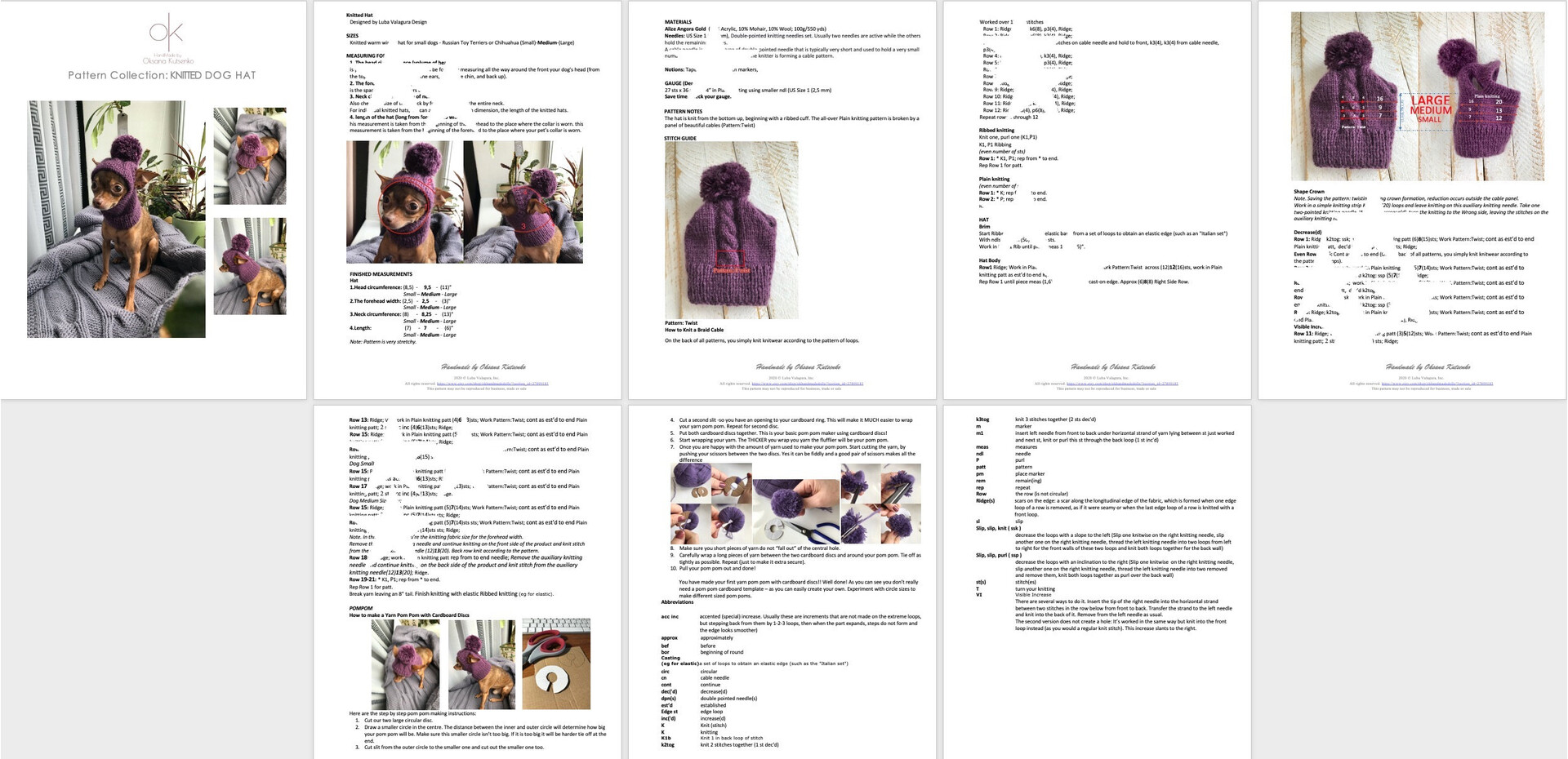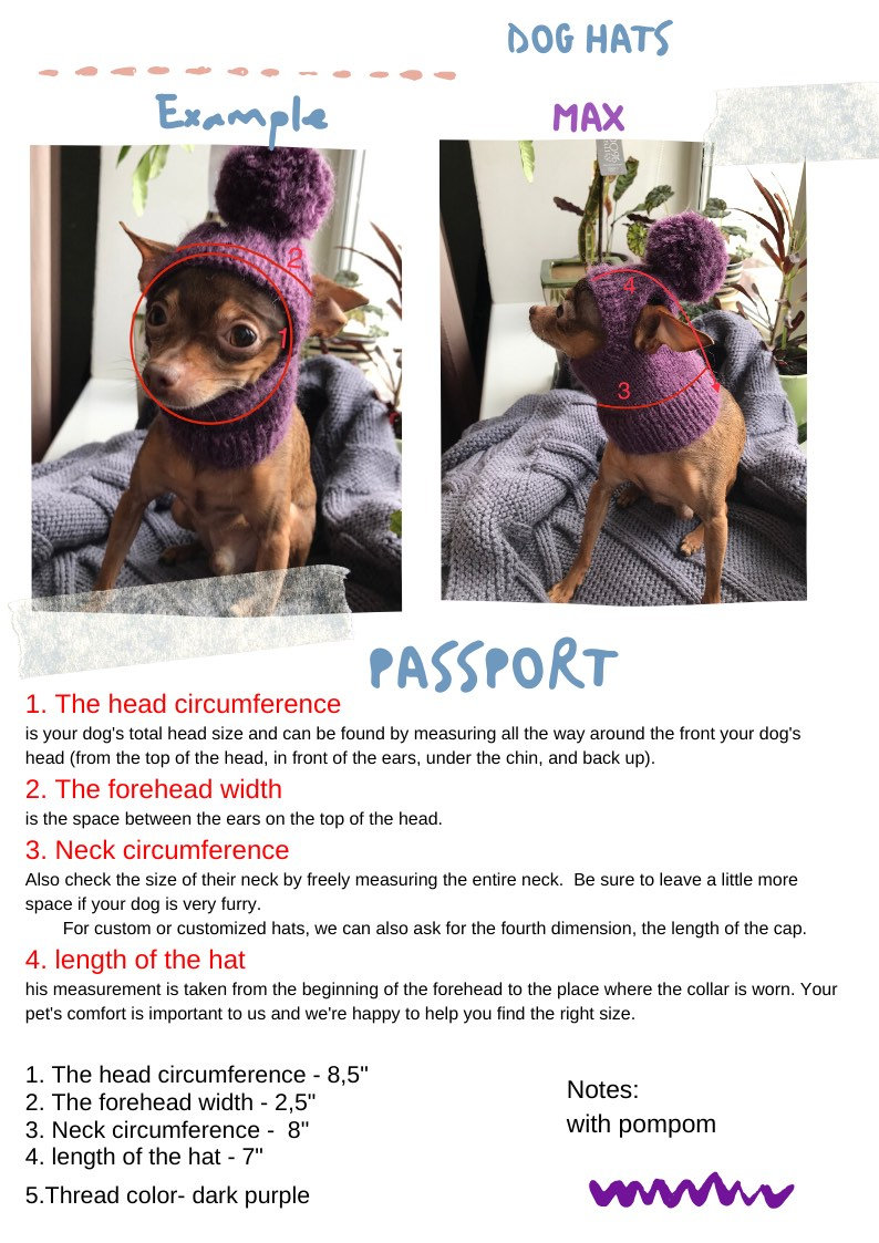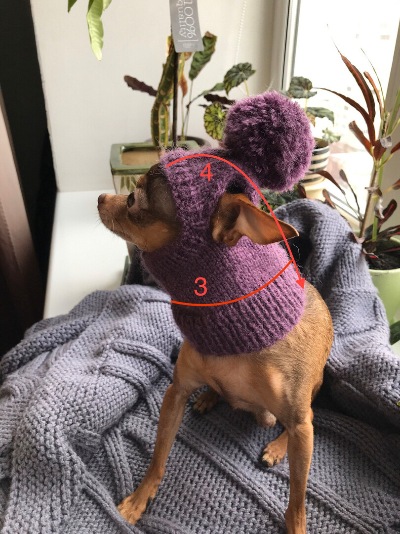 Cozy Knitted Pattern Hat for Chihuahuas and Other Small Pets, Warm Winter Hat with pompon for Dogs - Included PDF tutorial, Instant Download
