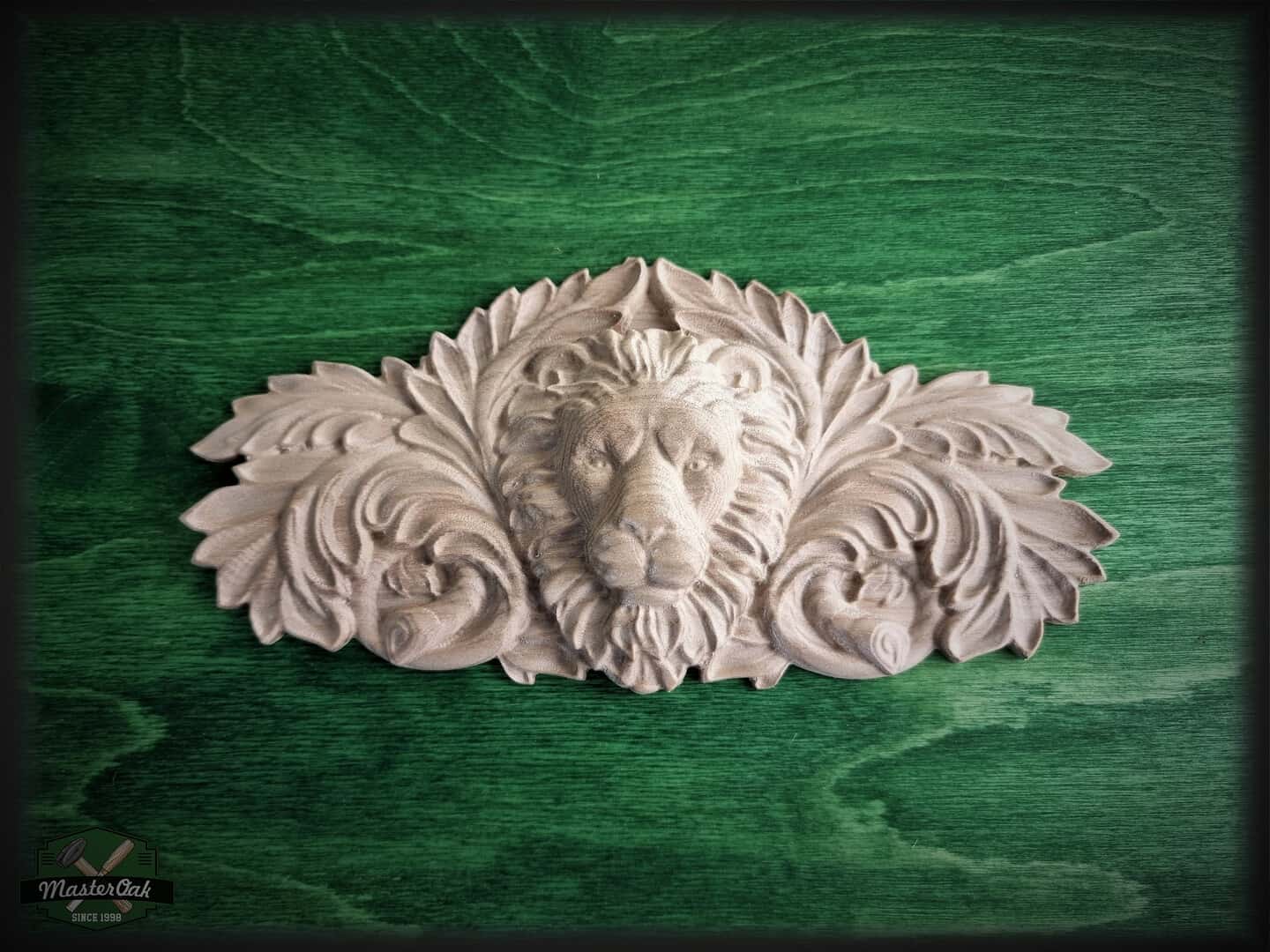 Lion Head of Wood Carved Applique Onlay, 1pc Home Wall Embellishments, Furniture Carving, Wood Onlay