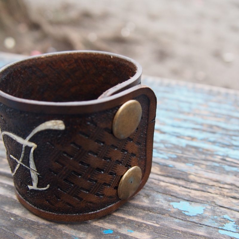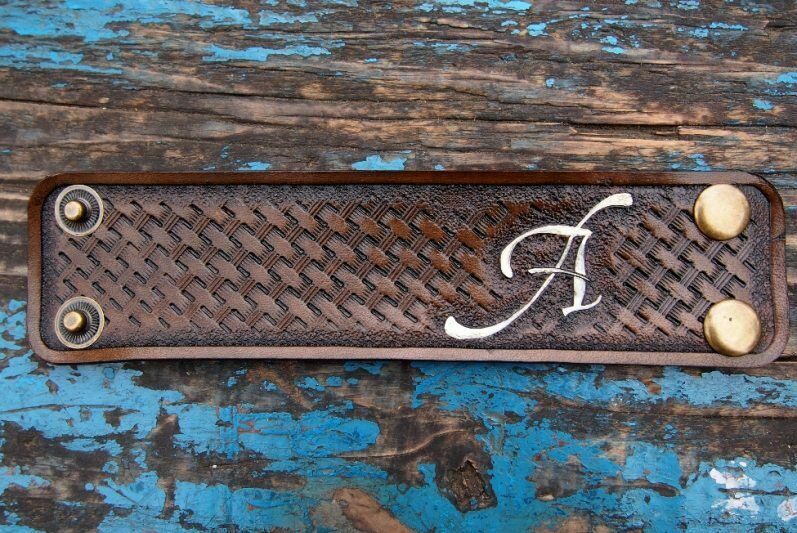 !!! We remind you that this is completely handmade, so some of the nuances, such as the tone of the color scheme, the minimum details, may differ. !!! The bracelet is made to order, we can make a bracelet with your initials. Leather bracelet Personalized hand made of genuine Italian vegetable tanned leather, leather thickness 2 mm. The technique of drawing a pattern is embossing. The bracelet is painted in several stages, at first it is impregnation with various means that prevent cracking of the bracelet and give the skin elasticity, then the application of the color is an antique gel with a patina effect. After painting, the bracelet is covered with varnish to protect the paint from abrasion, the varnish also protects the bracelet from moisture. Product size 20 * 6 cm. Closes with two buttons. When ordering a bracelet, we can make its length according to your wishes. And also make a bracelet with your design