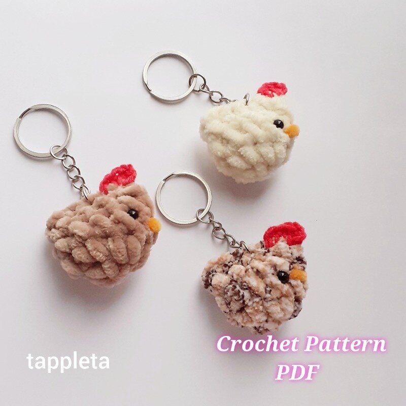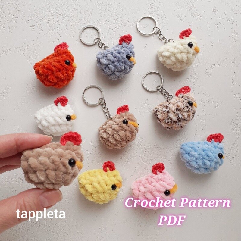 Mini chicken keychain crochet pattern, Plushie keychains, Chicken lover gift, Purse charm crochet, Kids pocket toys, tiny Easter chick decor