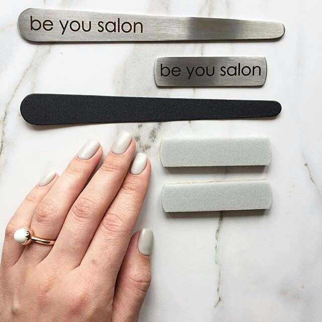 Personalised 155 mm Drop Metal Nail File Base, 100% SAFE salon manicure tool with Your Logo personalise, natural artificial nails + GIFT