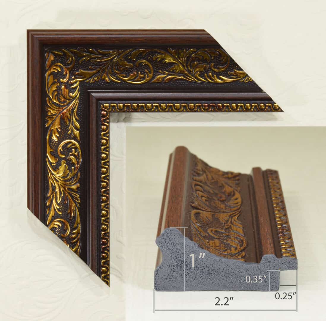 Picture Frame Classic, Brown and Gold, 2.2 inches wide. Frame for Canvas, Mirror, Handicrafts. Antique Frame for Canvas, Mirror, Handicrafts. 4x6, 5x7, 6x8, 8x10, 8.5x11, 9x12, 11x14, 12x16, 16x20, 18x24, Custom Frame, Overlay Finish, Decorative Décor, Italian Inspired Home Décor, Elegant Style Frame, Neoclassic, Antique, Diploma Frame.