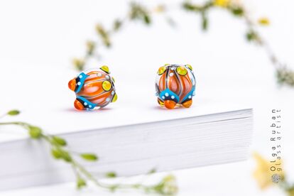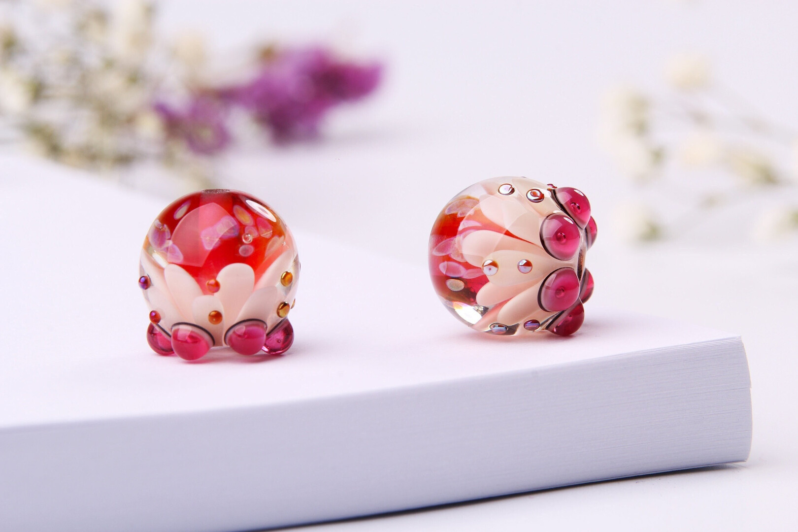 Pink Artisan Glass Bead Pair, Petal Lampwork Beads for Earrings