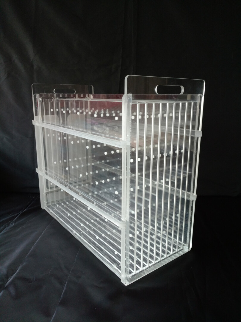 Wet plates washer. Device can process 12 plates 8x10"  or up to 24 plates 5x7/4x5". Features: - Inlet and outlet brass connectors have inch threads (1/2", 3/4"); - Supplied with basket container ; - Plates are placed slightly tilted into container to avoid knocking them over into the washer and emulsion damage.  - Basket has divider for smaller plate formats. ===============  Important notifications!  ================ Production and times Every washer will be created to order.  There are no ready to ship items, therefore keep in mind that producing takes time.  As regular it takes from week to two from material ordering to ready to ship device. Also other orders can be in line when you make your own order and third party delays also happen. In additional these days due to known actions on my land some extra delays may happen. As a rule I notify buyer about production time in message after order. If you worries about times, please ask about it before buying! Washers made of acrylic. Due to manual manufacturing devices may contain marks: small scratches, glue marks on surfaces and bubbles into the glue lines. However it is doesn't take effect on functionality, common look and doesn't limit owners to be satisfied with device. Be sure that each washer I produce with due care and attention. Design may be slightly differ from the sample view on the photographs due to time to time modernisation. Shipping & delivery: It is possible to send goods mostly worldwide with range of services.  Shipping prices are actual mostly for United States. Shipping cost for consumers outside US specified approximately and may differ. Please clarify about delivery cost for your county before ordering. Due to international sale some customs and import taxes may apply to buyers depending on location. All devices are packed well in several package layers, however Please check your parcel at least visually when you will receiving it. In case the box is damaged or looks bad open it with courier to check goods. It may let me and you to get refund if device will be damaged on the way. ========== Options: You can ask to create almost any custom washer or tray for films and prints with necessary holding capacity, additional modules (such as module for Hypo clear solution) and format (up to 20x24" and more). Find more interesting on my Instagram:  underredlight