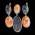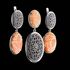 The earrings and pendant consist of two parts. One link is made of openwork silver, the second is made of gemstones.