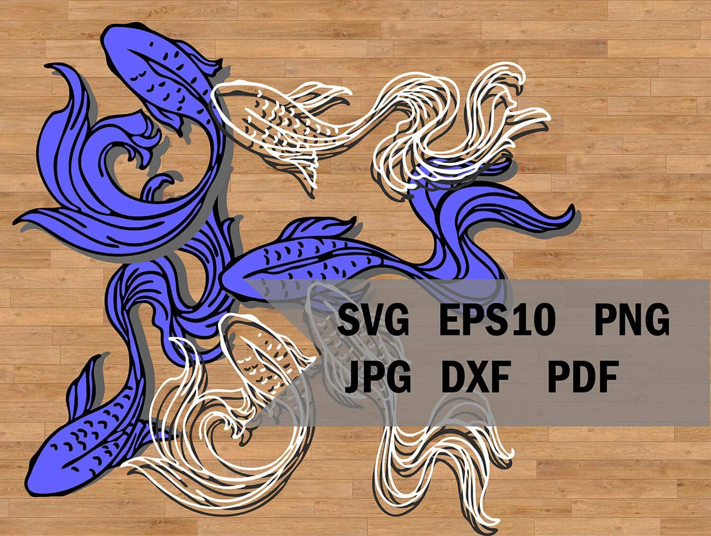 Set of 3 Pisces, Fishes SVG cut file for Cricut and Silhouette, Fishes Vector cutting file, Pisces Instant Download