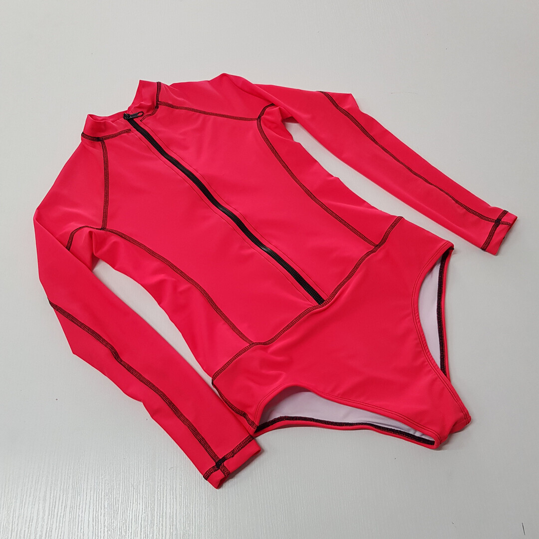 Sexy Long Sleeved Women Swimsuit Red Dawn One Piece Swimsuit Lycra Long Sleeve Bathing Suit Surf Swimwear Front Zipper UV