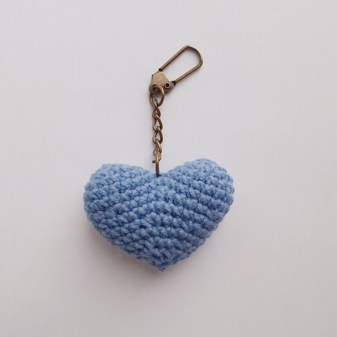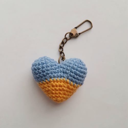 Crochet Heart Ukrainian Flag. Blue and yellow heart keychain.