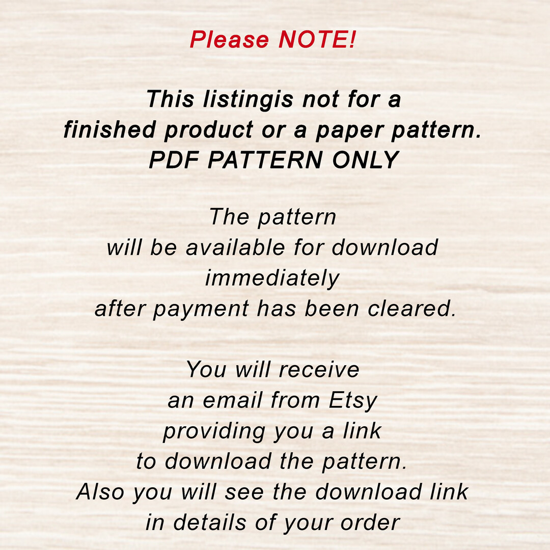 ! ! This listing is not for a finished product or a paper pattern! PDF PATTERN ONLY ! !