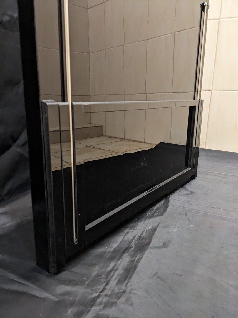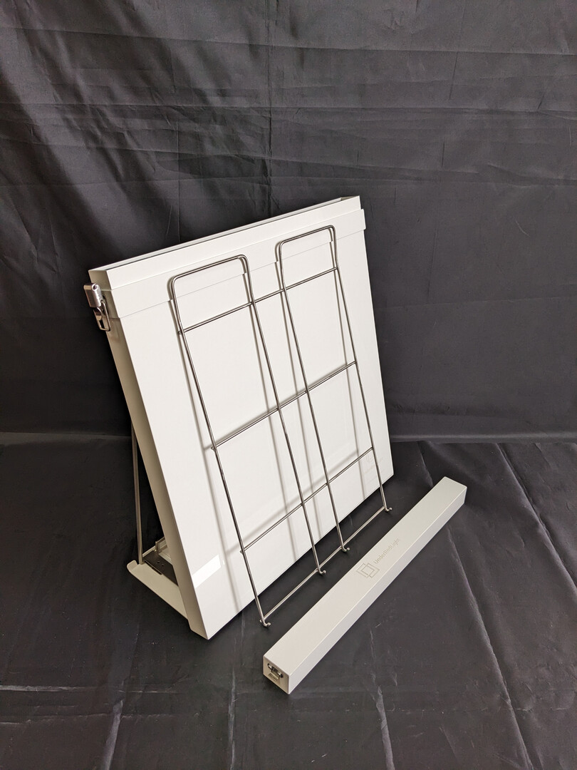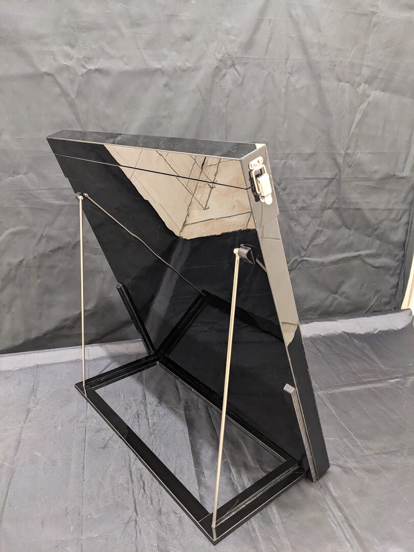 Vertical tank for sensitising ultra large format wet collodion plates with rear stand.