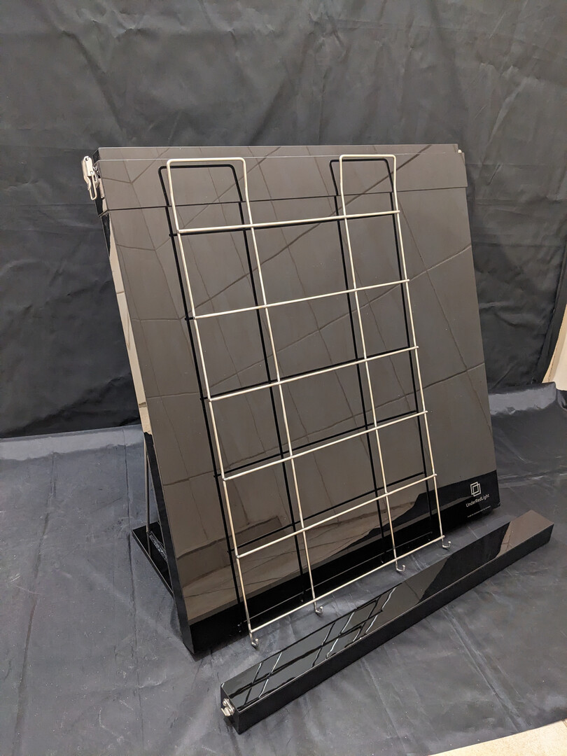In addition tank has rear stand with folding design that allow to set device in inclined position to load and process plates and fold it for transportation.