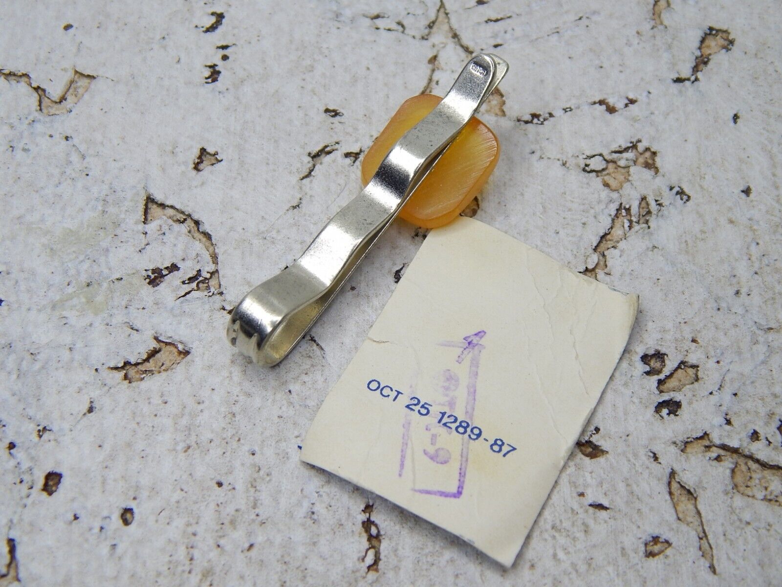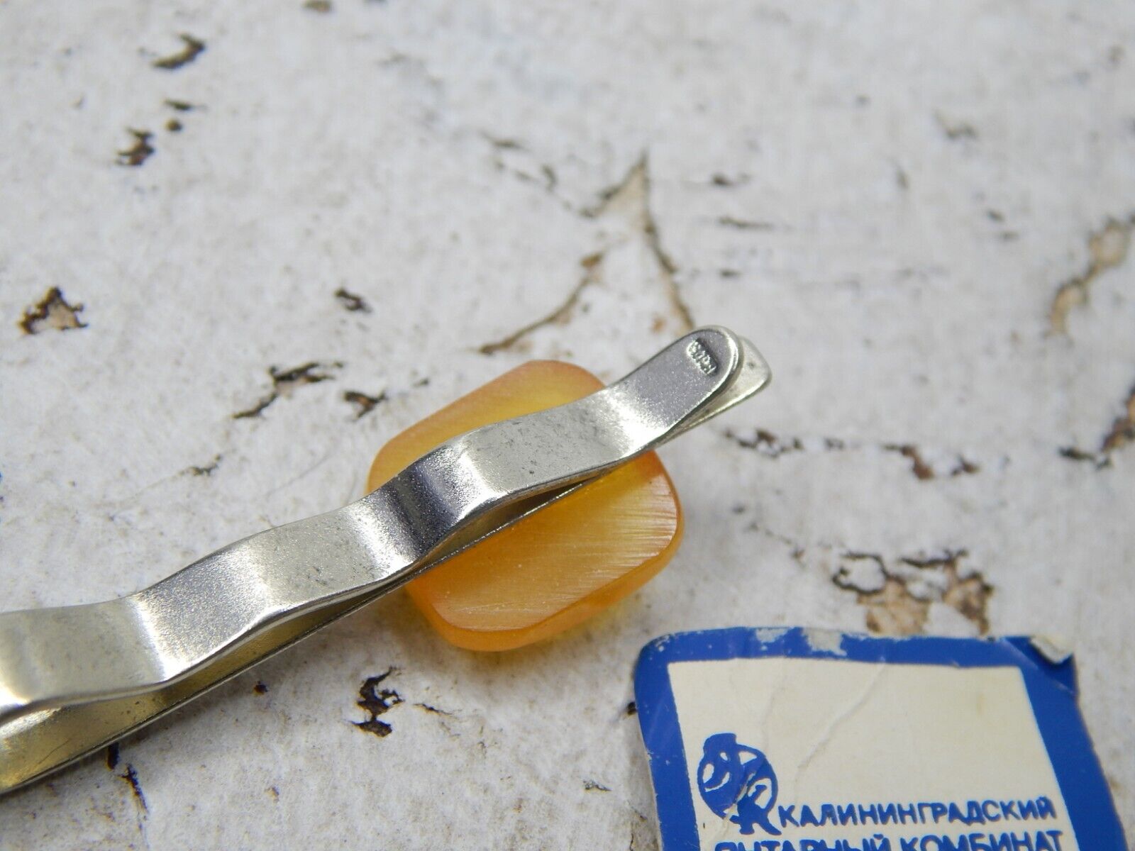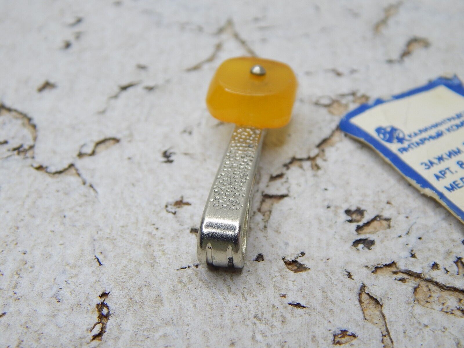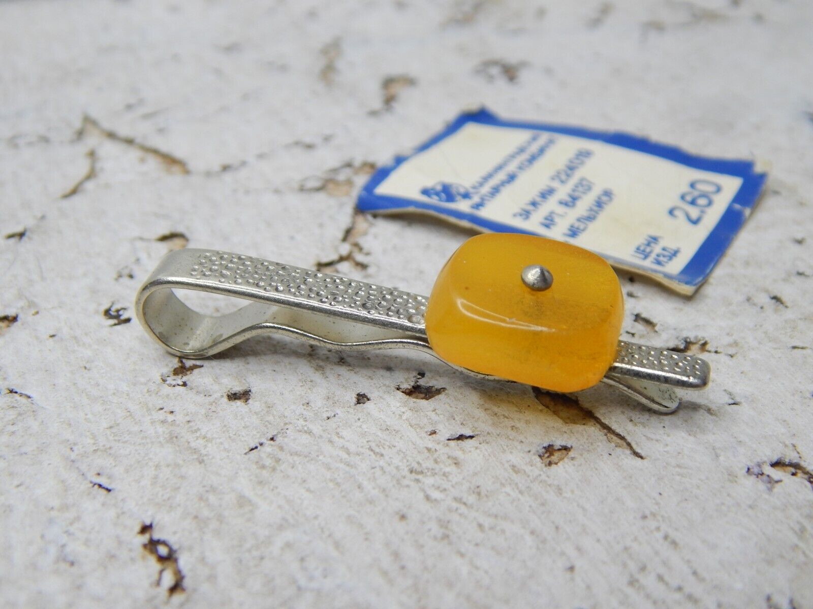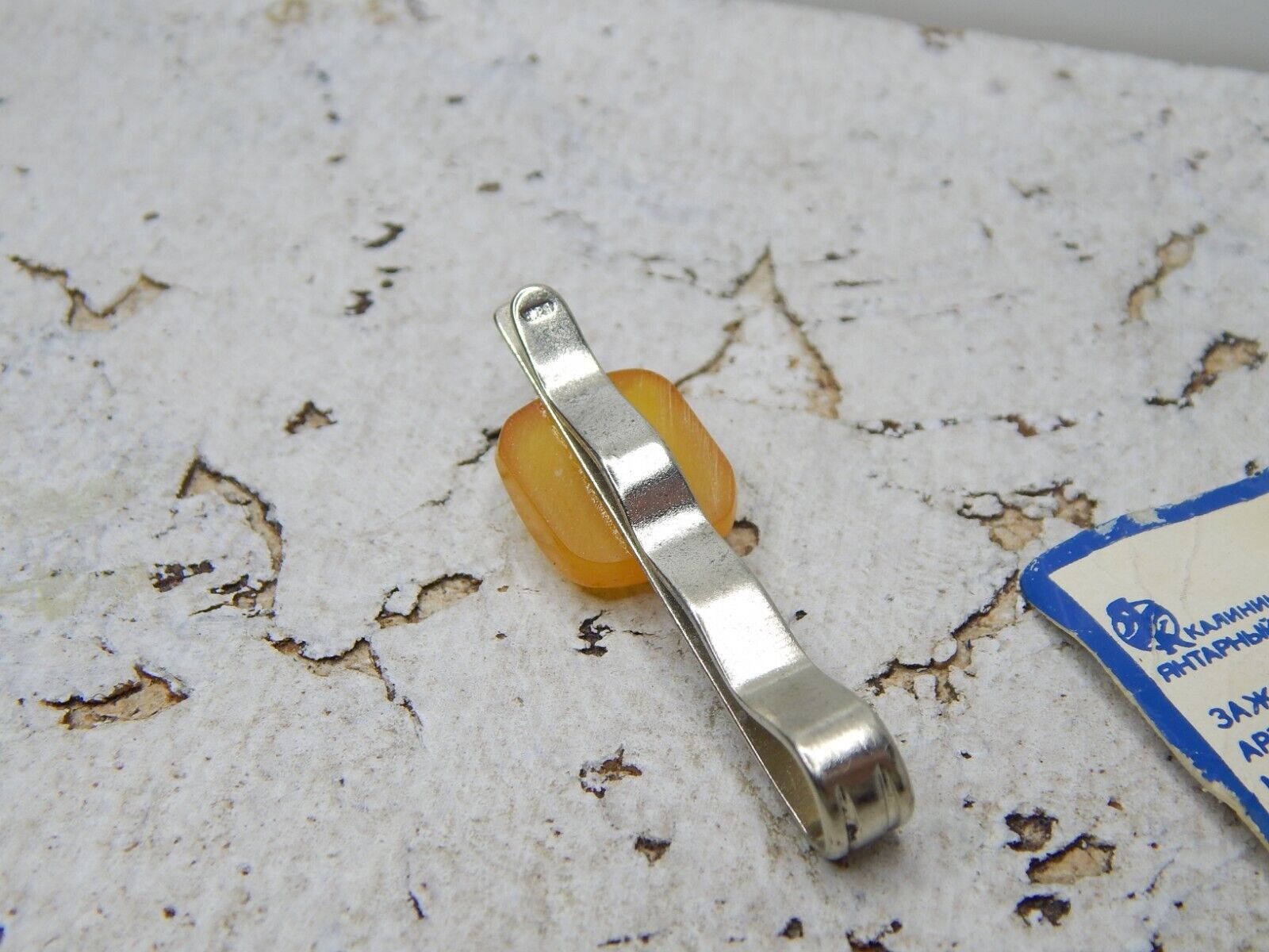 Vintage Melhior Tie Clip with Natural Amber USSR Tie Bar Not been Use #3