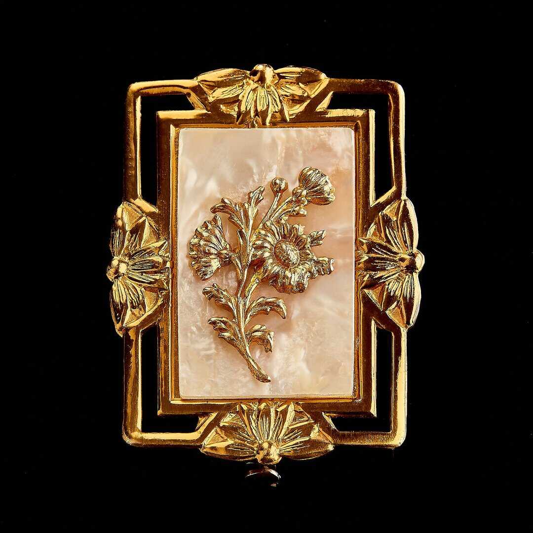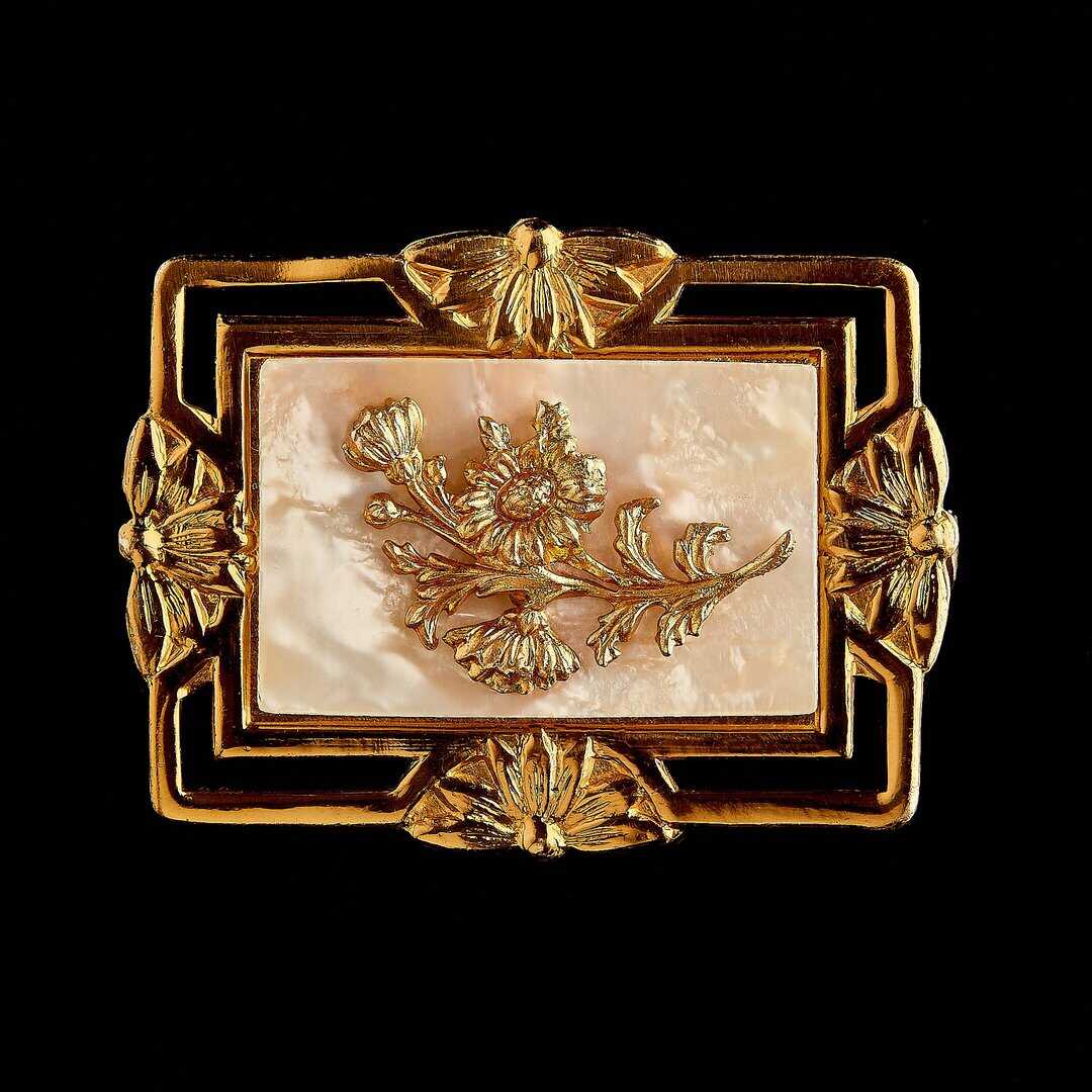 Rare jewelry pin in mother-of-pearl and gilding. Vintage 60's Collectible Pin Brooch for Her or Him.